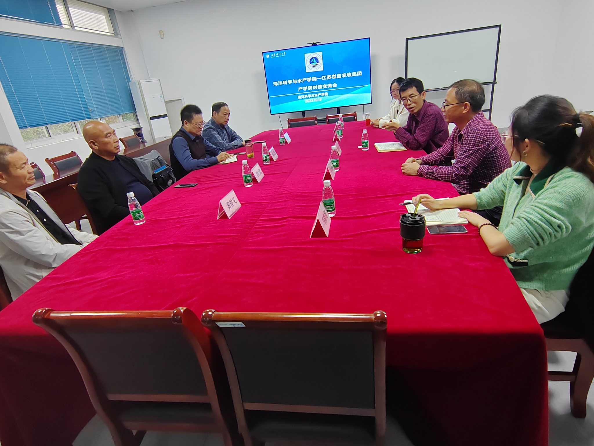 冯志华对杨宗宝总经理等一行的到来表示热烈欢迎,感谢江苏世昌农牧集团对学院的支持和帮助。杨宗宝总经理介绍了江苏世昌农牧集团发展情况,并提出关于轮虫+螃蟹苗养殖工艺、尾水处理工艺等产业技术需求。双方就发挥各自优势,寻求合作契合点进行了深入交流,与会人员均希望双方不断加强校企合作,协同推动产学研深度融合。