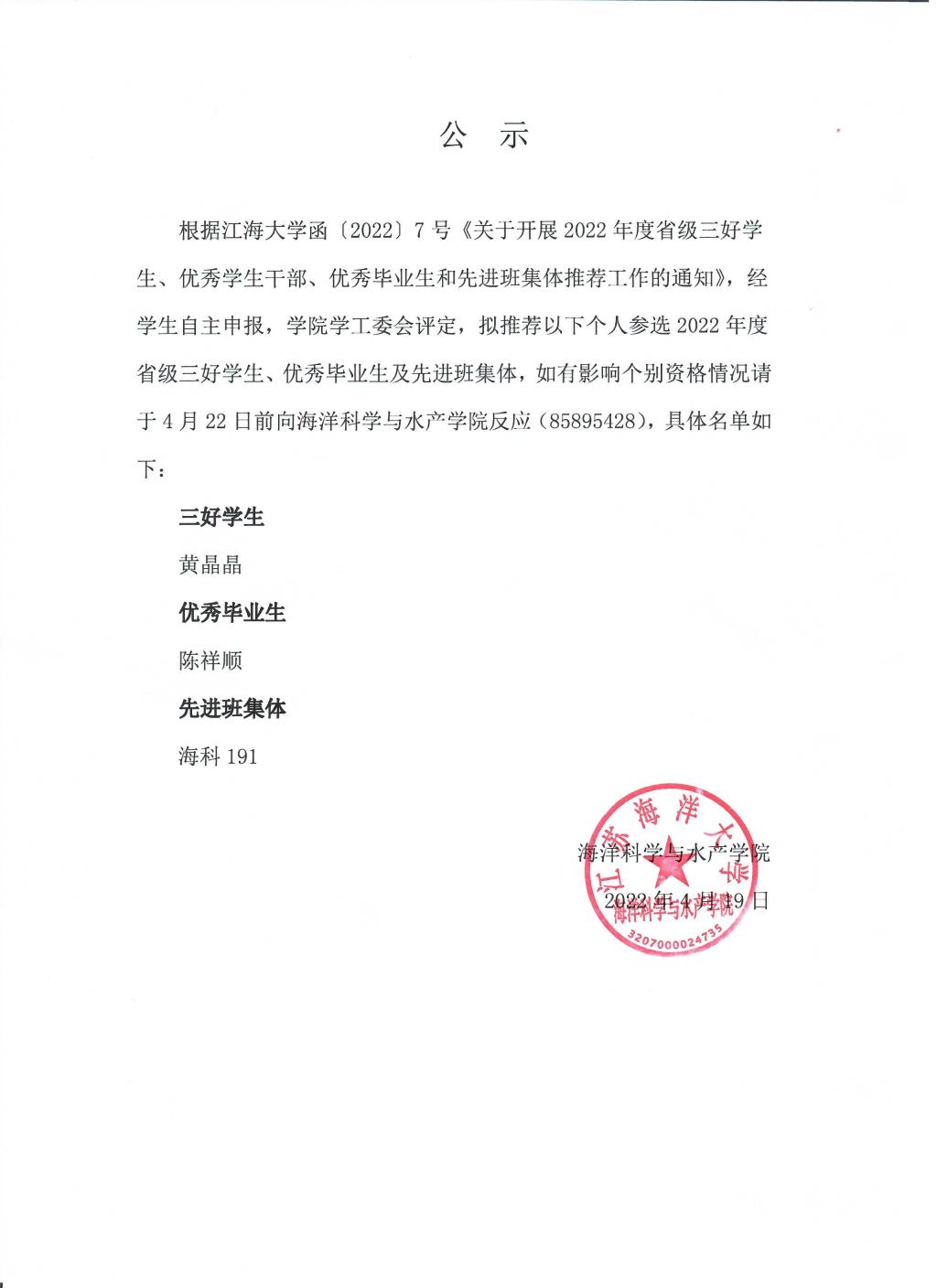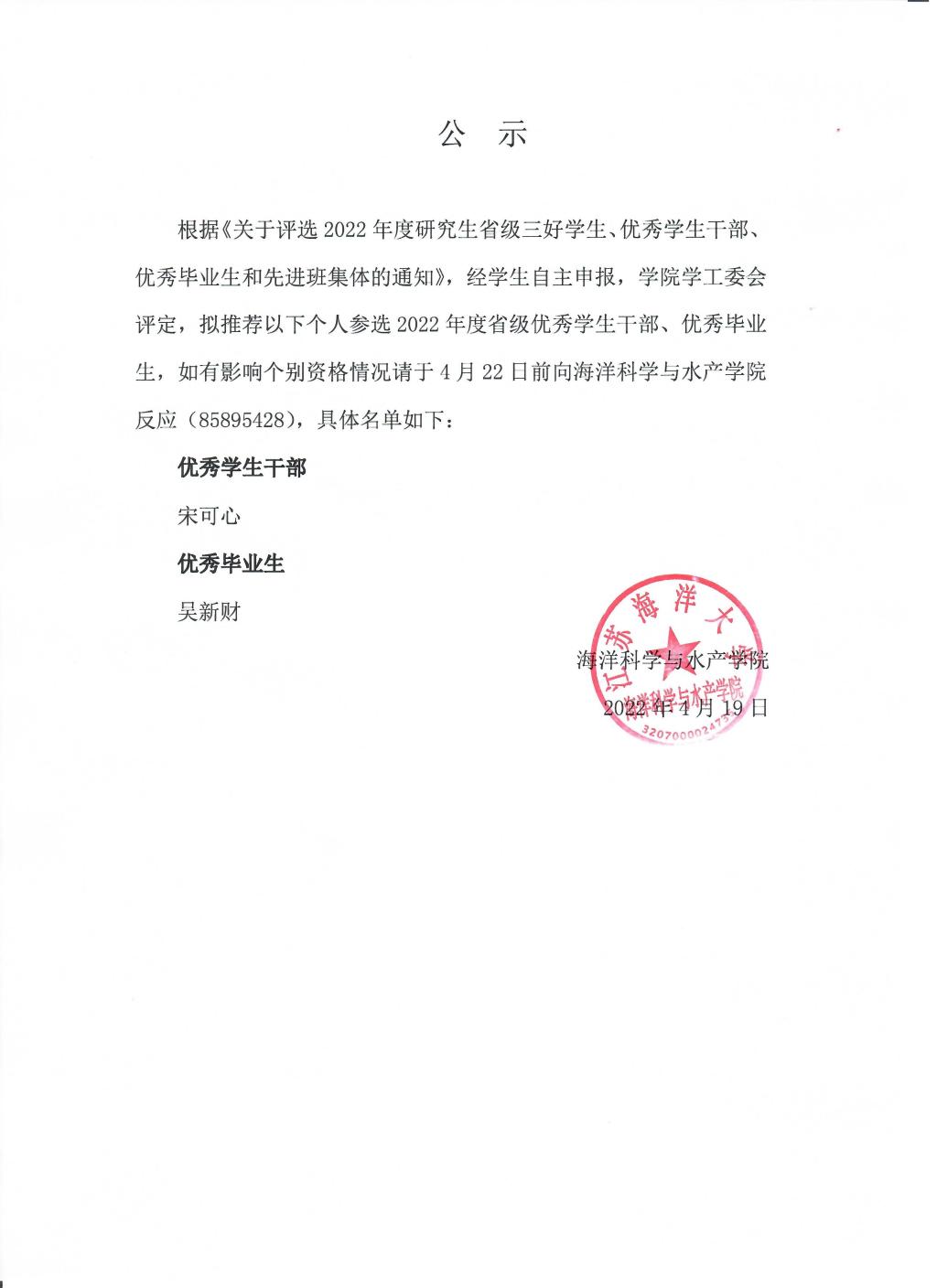 2022年度省级三好学生、优秀学生干部、优秀毕业生和先进班集体推荐名单公示