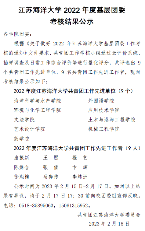 welcometo欢迎光临888集团2022年度基层团委考核结果公示