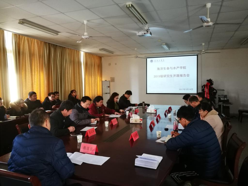 3月14日和3月15日上午,海洋生命与水产学院分两组举行2015级硕士研究生毕业论文开题报告会。海洋生命与水产学院院长阎斌伦、海资院院长王淑军、专硕的校外导师以及海院的15位导师组成开题报告专家组。报告会分别由阎斌伦院长和副教授王灵昭主持。