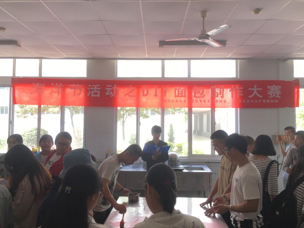 为增强我校大学生动手能力,激发学生的创造力。2017年5月7日,海洋生命与水产学院第四届海洋节系列活动之“青春无限魅力,创意丰富生活”DIY面包制作大赛在海洋北楼110食品实验室完美收官。来自机械、电子等不同学院的十个代表团都发挥他们独特的创意,创作出一款款与众不同的创意面包。海洋生命与水产学院党委副书记唐瑶、食品系老师舒留泉、辅导员王静出席大赛并担任评委。