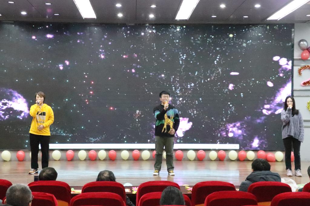联欢会在精彩的节目之间穿插了颁奖典礼、游戏互动、幸运抽奖、现场书写对联等环节,调动了大家的积极性,增加了活动的趣味性。颁奖典礼为各位卸任的系主任颁发了纪念品,以表彰他们为学院学科建设作出的突出贡献。活动中还表彰了学院2019年度在各领域表现突出的教师——有被誉为“渔民教授”的“奖项之星”阎斌伦教授;有时刻关注时政新闻,具有丰富理论知识的“学习之星”马恒民书记;有教学充满热情,课堂亲切有趣的“教学之星”秦蕾老师……全体教职工分别参加了“心有灵犀猜词语”“看图识人考眼力”“幸运抽奖赠对联”三个环节的游戏互动,活动现场笑语不断,高潮迭起。