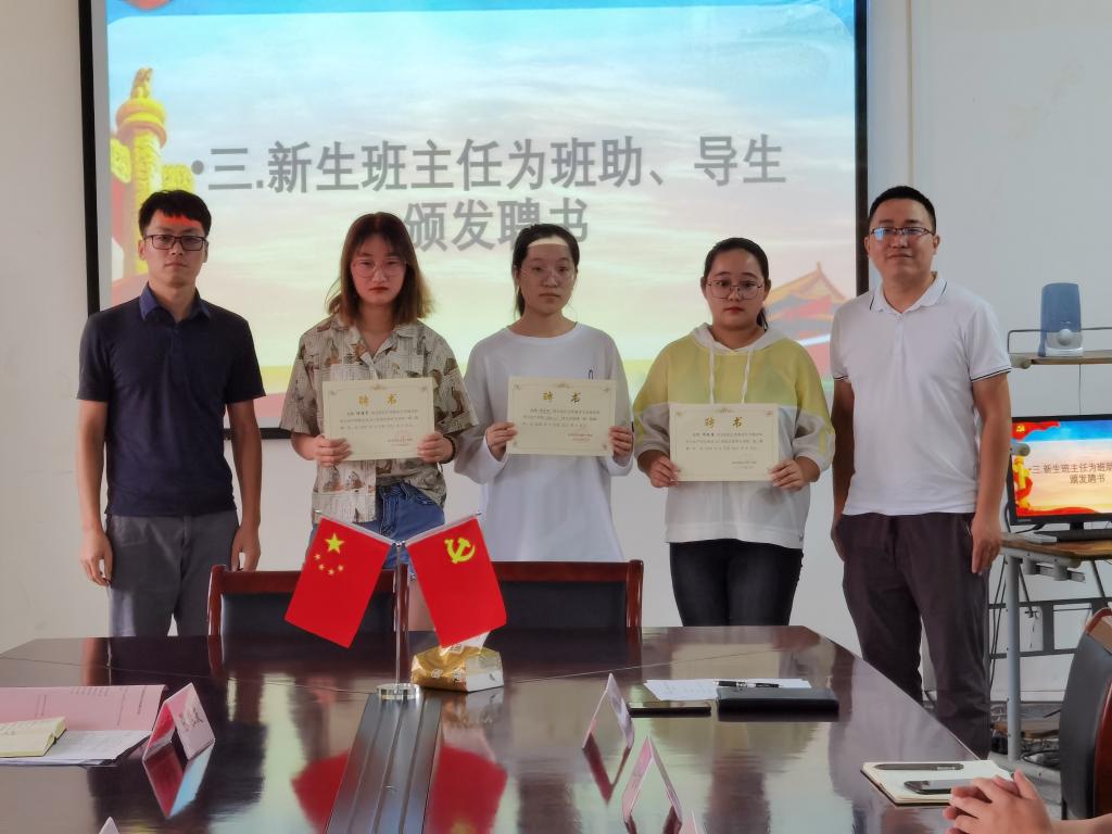 会上,张根友宣读了《关于聘任888集团welcome2020级新生班主任助理的决定》,唐振新宣读了新生班级支部导生的聘任决定,各新生班主任为新生班助、导生颁发聘书并合影留念,张根友对迎新工作进行了详细的布置,与会人员就工作安排过程中的一些环节进行了沟通和协调。