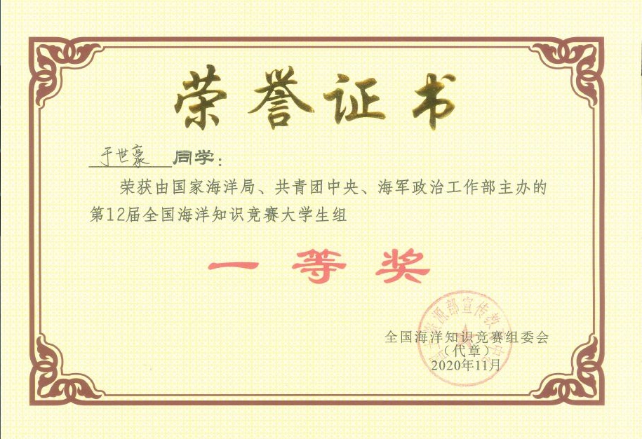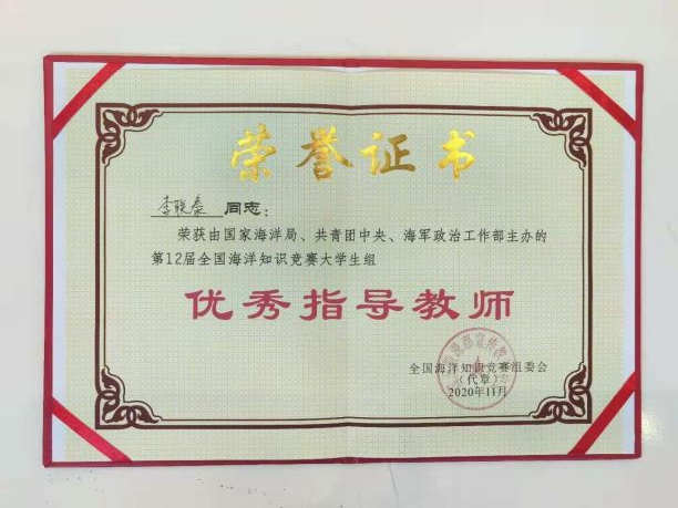 11月23日,第12届全国海洋知识竞赛大学生组总决赛在海南省海口市落下帷幕。888集团welcome海洋科学系于世豪同学获得一等奖,李联泰教授荣获优秀指导教师,我校获得优秀组织奖。