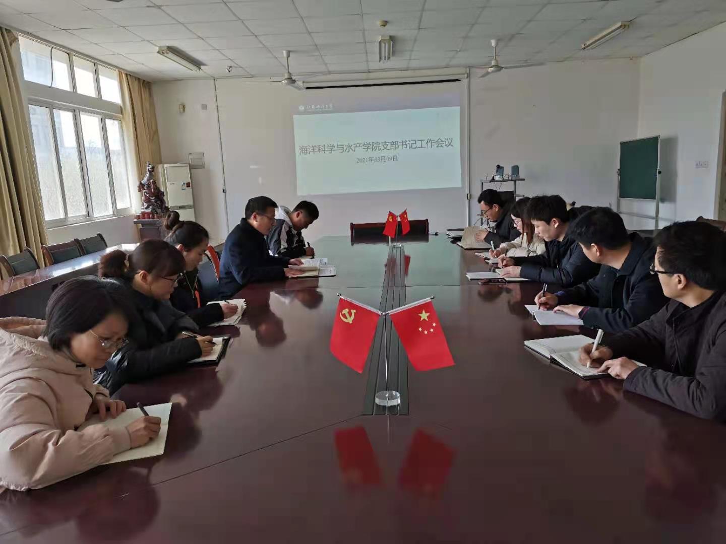 3月9日下午,888集团welcome在海洋南楼202召开新学期党支部书记工作会议,学院党委有关领导、党政办主任、各党支部书记参加了会议。会议由学院党委副书记张根友主持。