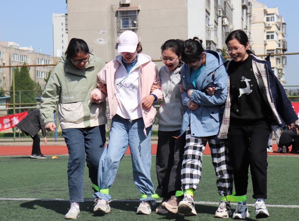 随后比赛正式开始。比赛分为“乘风接力”、“拔河”、“奔向明天”、“乒乓球接力”、“飞镖投掷”、“绳采飞扬”六个趣味项目。首先是“奔向明天”——五人六足赛,大家迈着默契整齐的步伐,肩并肩,喊着一致口号齐心协力奔向终点。接着便是乒乓球接力,八位同学彼此传球,用U型槽轮转接力将球稳稳地放入指定位置;令人激动的则是飞镖投掷环节,一队四人,每人五标,大家各展神通,期间一位同学更是以潇洒动作直中两记九环,赢得大家欢呼喝彩;随后“乘风接力”——10乘80米接力跑,风一般的速度,同学们奋力冲刺,挥洒的不仅是汗水,更是青春的激昂。还有“绳采飞扬”跳绳项目、拔河比赛无不是拼的集体凝聚力和协作精神。整个比赛的氛围热烈又不失轻松愉快,参赛的同学们大展身手,全身心的投入到比赛当中。
