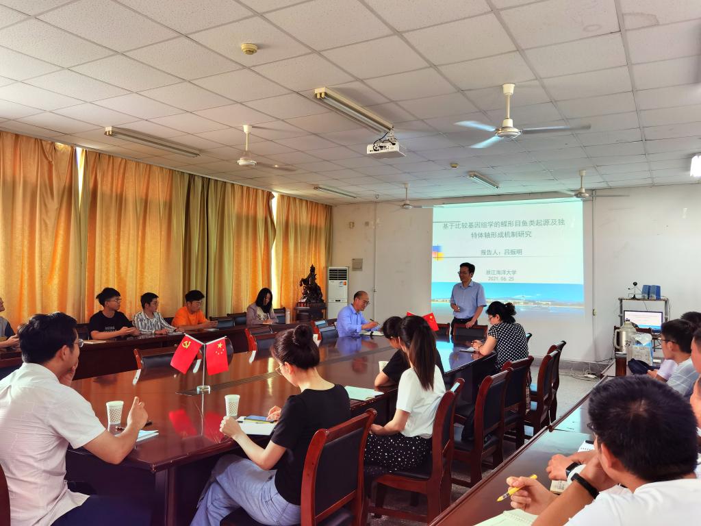 6月25日上午,浙江海洋大学浙江省海洋生物种质资源发掘利用工程实验室主任吕振明教授,受邀在888集团welcome南楼202会议室作了题为《基于比较基因组学的鲽形目鱼类起源及独特体轴形成机制的研究》的学术报告。报告会有高焕副院长主持,888集团welcome相关研究方向的教授、青年教师和学生40余人参加了此次学术交流活动。