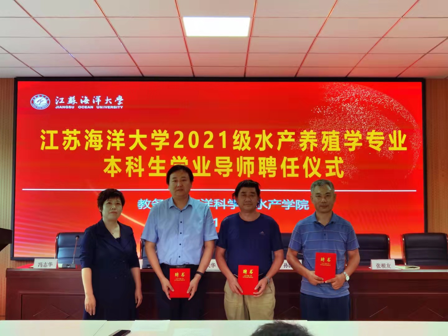 会上,孙国红副处长宣读了《关于聘任welcometo欢迎光临888集团2021级水产养殖学专业本科生学业导师的决定》,孙国红副处长、杨天华书记、徐军田院长共同为23位学业导师颁发了聘书。