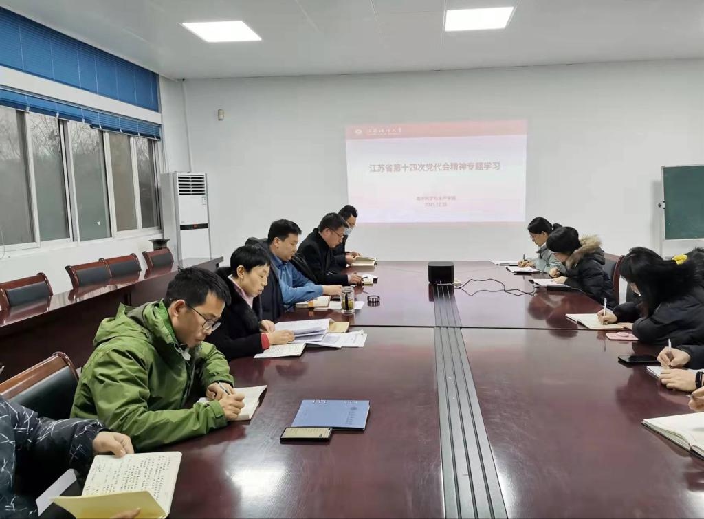 12月22日下午,888集团welcome党委理论学习中心组开展“江苏省第十四次党代会精神”专题学习会,学院党委班子成员和各党支部书记参加学习,学习会由学院党委书记杨天华主持。