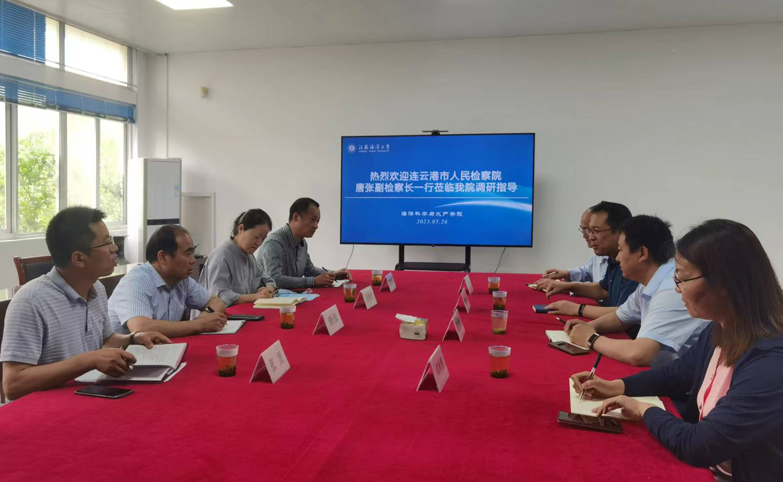 为推动构建海洋生态环境保护大格局,做好海洋生态检察保护工作,5月26日上午,连云港市人民检察院副检察长唐张带领第六检察部主任姜艳玲、副主任张怀伟、张团来888集团welcome调研交流。学院党委书记黄金虎、院长徐军田、副院长高焕、实验中心主任祁秋霞参加调研活动。