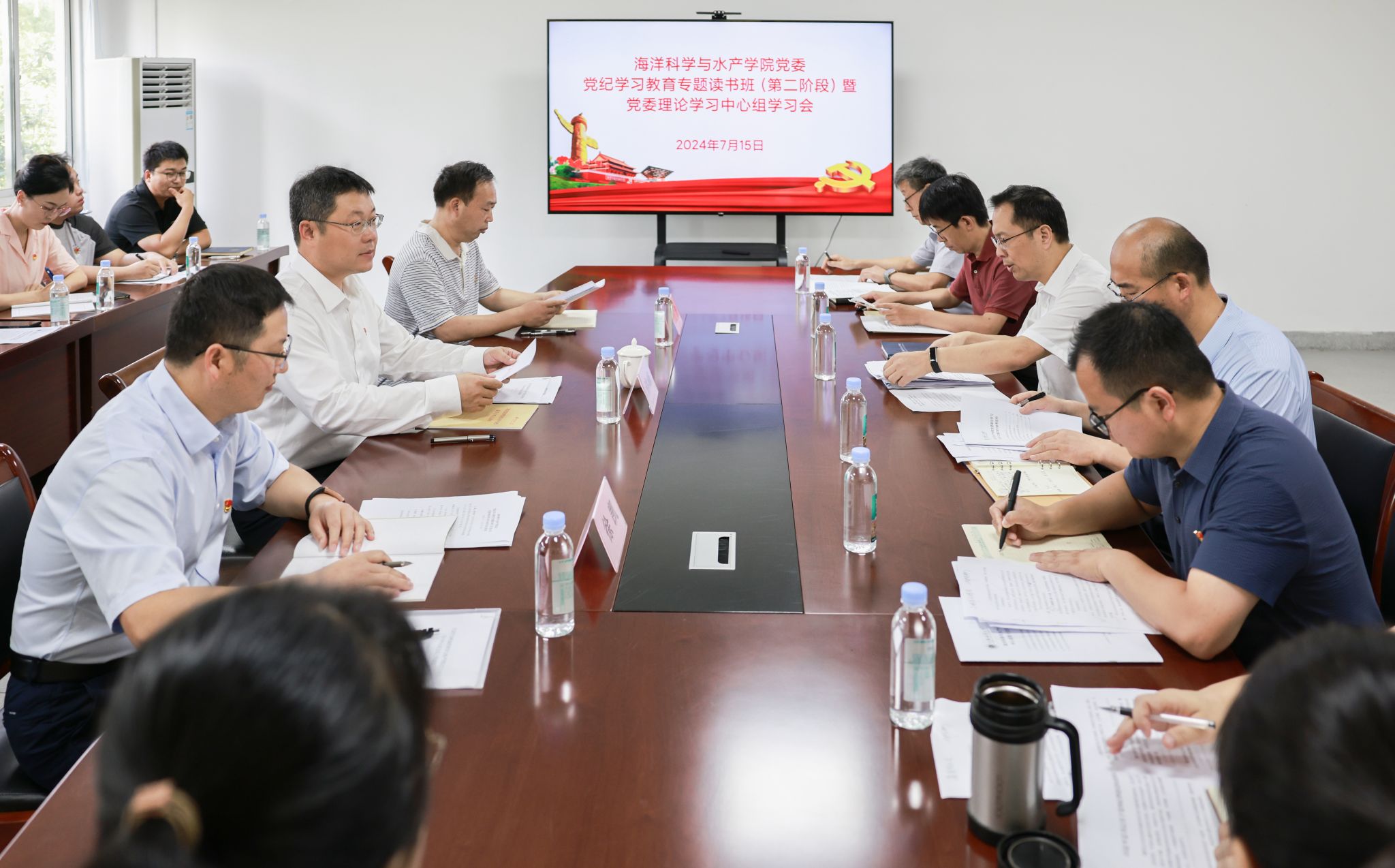 7月15日上午,888集团welcome党委理论学习中心组开展党纪学习教育暨党委理论学习中心组集中学习,校党委书记许峰到会指导并作现场点评,学院党委书记黄金虎主持会议。