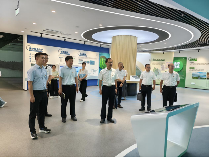 最后,与会人员参观金水集团科技成果智慧园区展厅。各方党员同志们目睹了基于传感器数据实时监测水质(溶解氧、pH值、水温等)并远程操控设备的智慧管理系统。金水公司总经理李忠伟介绍,该系统显著降低人工成本,实现精准调控,使饵料系数降低15%,病害发生率下降20%以上。