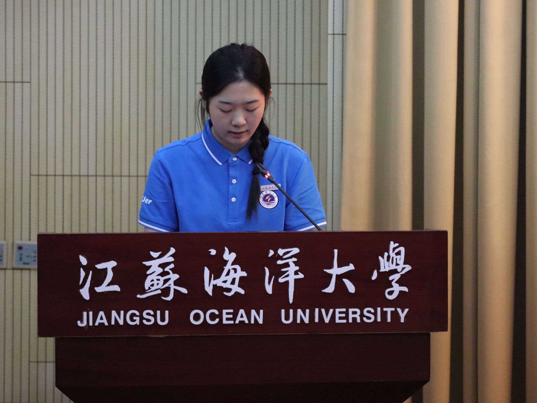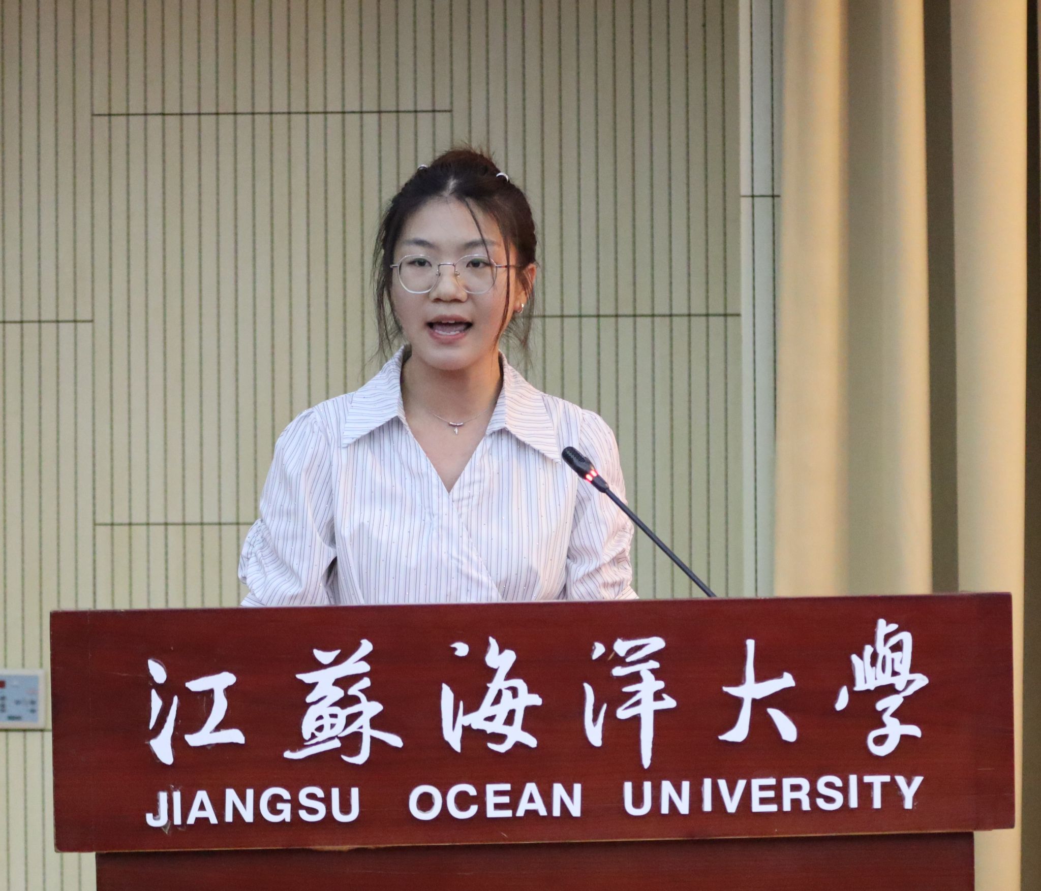 新生代表海环1251班王瑞婕表达了加入学院大家庭的喜悦,她号召同学们要在大学实现成长与突破,建议大家做好四方面改变:一是转变角色定位,牢记求学初心;二是兼顾广博知识与专业深度,刻苦钻研学科内容;三是坚持知行合一,将理论学习与实践探索相结合;四是注重团结互助,与同学们携手共进、共同进步。