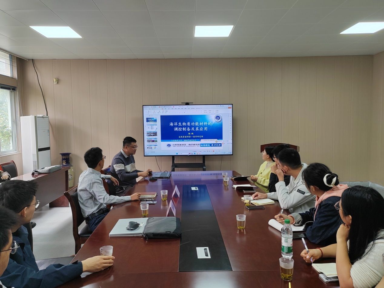 鞠鹏副研究员作了题为《海洋生物质功能材料的调控制备及其应用》的学术报告,详细介绍了新型海洋功能材料的设计开发及其在环境监测与修复中的应用。鞠鹏副研究员重点分享了该领域的最新研究成果,包括海洋生物质材料的合成方法及其在环境修复中的具体应用实例,并深入探讨了这些材料在海洋环境保护中的潜在价值。
