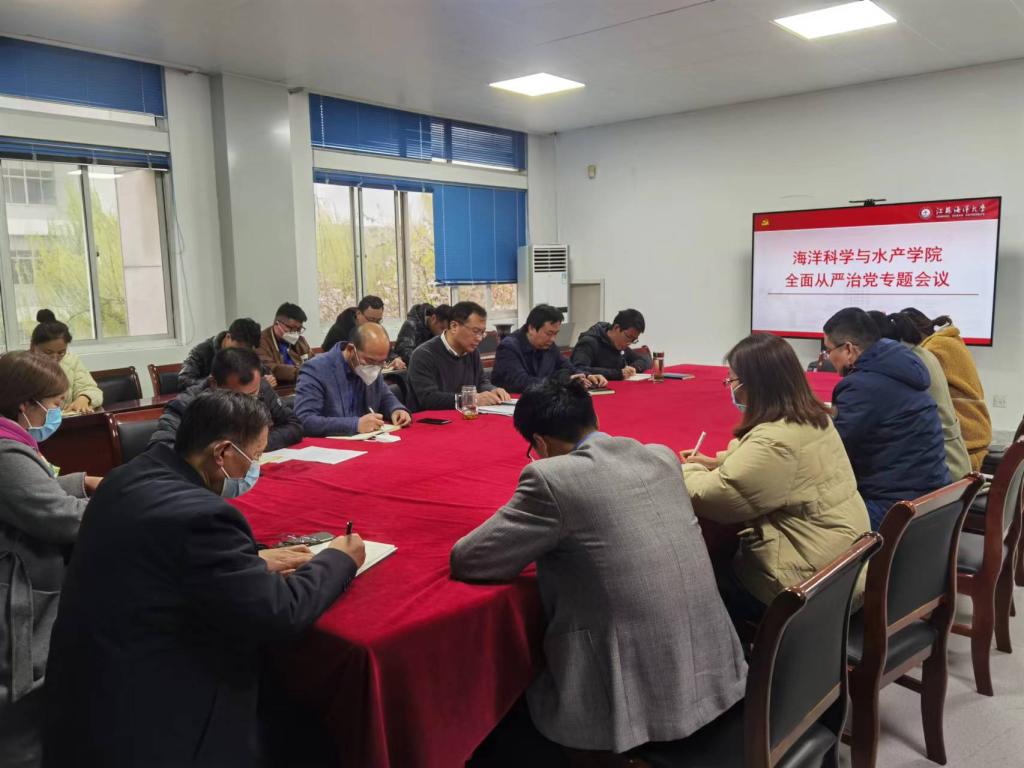 3月22日下午,888集团welcome在海洋南楼211会议室召开全面从严治党专题会议,学院党政班子成员、院党委委员、各党支部书记、各系(实验中心、办公室、团委)负责人参加会议,会议由学院党委副书记朱小明主持。