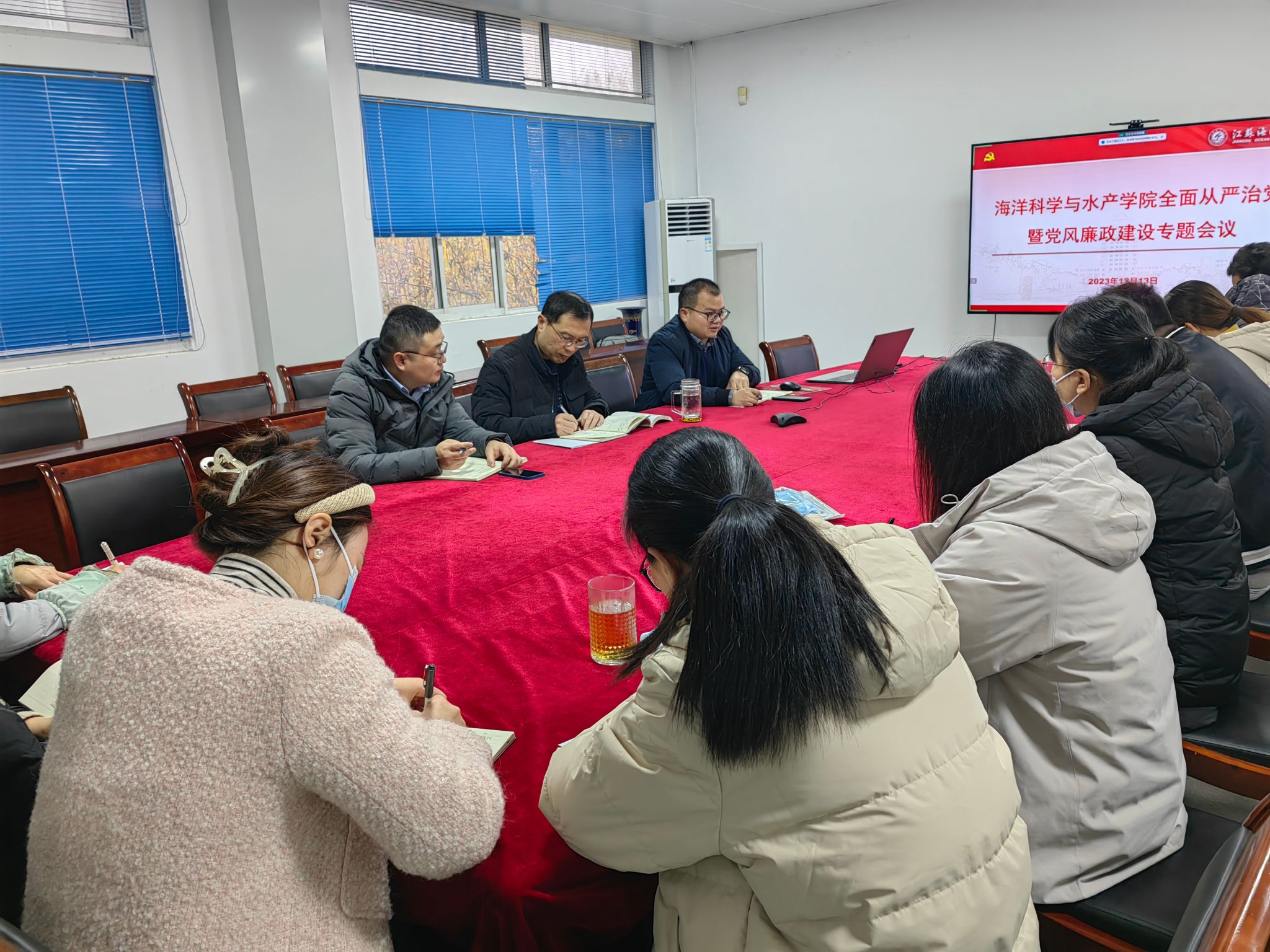 12月13日下午,888集团welcome在海洋南楼211会议室召开全面从严治党暨党风廉政建设专题会议,学院党政班子成员、院党委委员、各党支部书记、各系(实验中心、办公室、团委)负责人参加会议,会议由学院党委副书记朱小明主持。