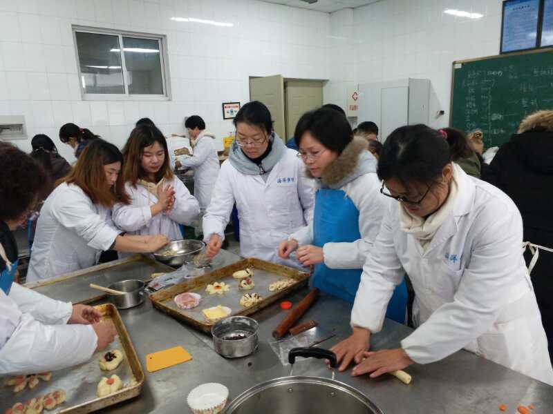 本次大赛前后历经一周时间,由学院食品与生物工程系和实验中心安排专业教师对全体教职工进行培训。大家利用个人休息时间,精心挑选制作食材,每一位参与者都表现了极高的热情。最后以系、部门为单位分为七组,每组选派3名教师参加糕点制作比赛。