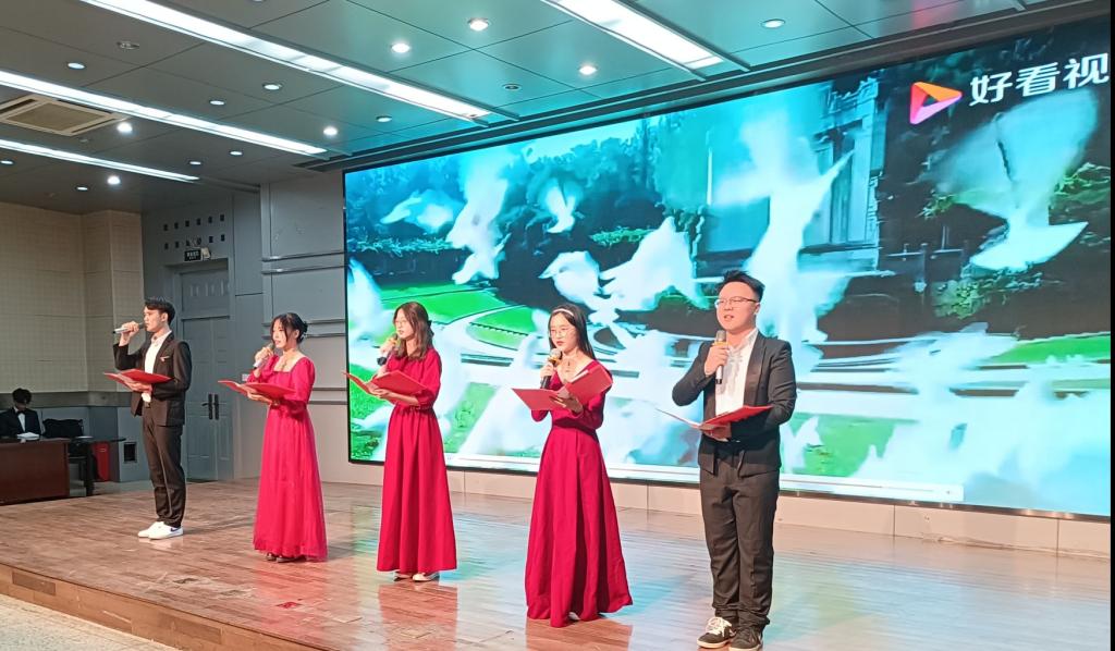 为庆祝中国共产党成立一百周年,回顾中国共产党百年奋斗的光辉历程,展望中华民族伟大复兴的光明前景,888集团welcome11月10日晚于艺术楼报告厅举办“峥嵘百年,盛世中华”主题诗朗诵赛。888集团welcome党委副书记张根友、党政办主任张利民、团委副书记唐振新及文法学院团委负责人李想出席活动并担任评委。学院2020、2021级经过初赛选拔脱颖而出的八个班级队伍参与角逐,活动由实践部胡骏熙和李志航主持。