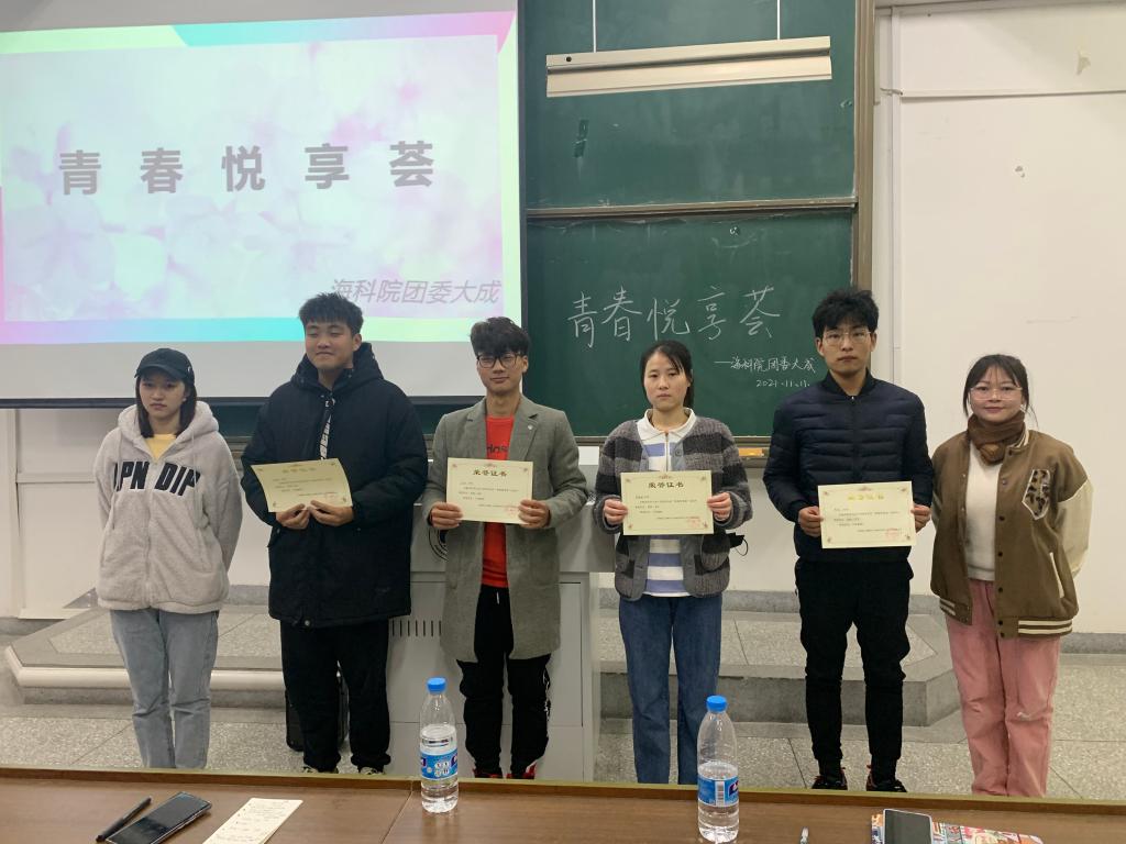 经过激烈角逐、现场评审,最终养殖201王慧敏、海科191黄晶晶荣获一等奖,海环201张燕燕、生技1212程伟涛、生技201冯钰婷获得二等奖,海科202李铁铮、生技201马佳伟、海科202倪嘉璇获得三等奖。
