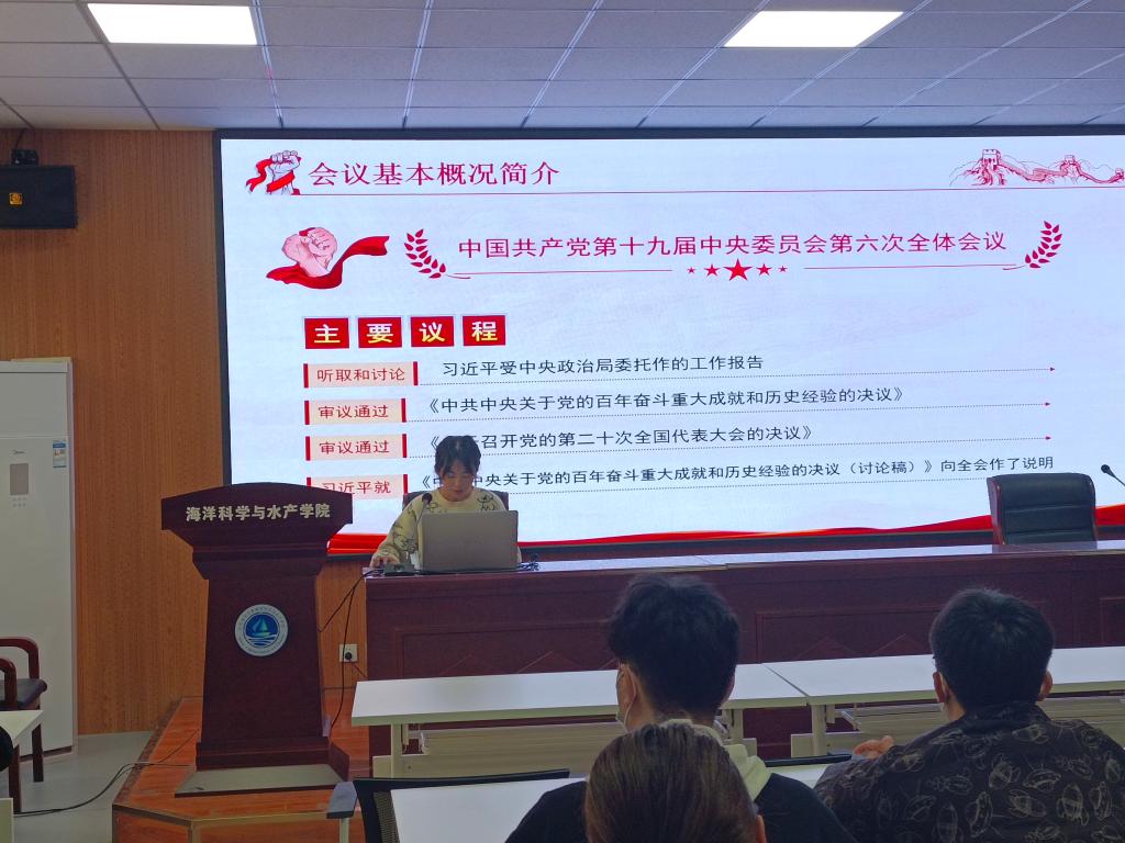 2021年11月21日下午,888集团welcome组织学生党员、入党积极分子、学生干部学习中共十九届六中全会精神,会议由学生党员工作站组织委员董欣雨主持。