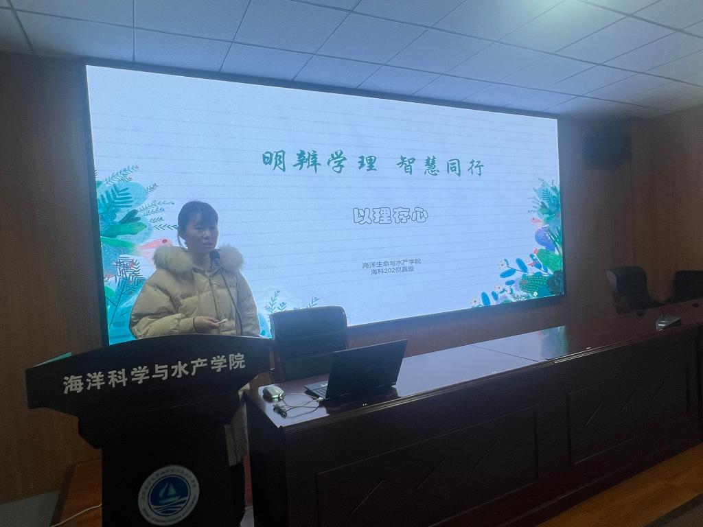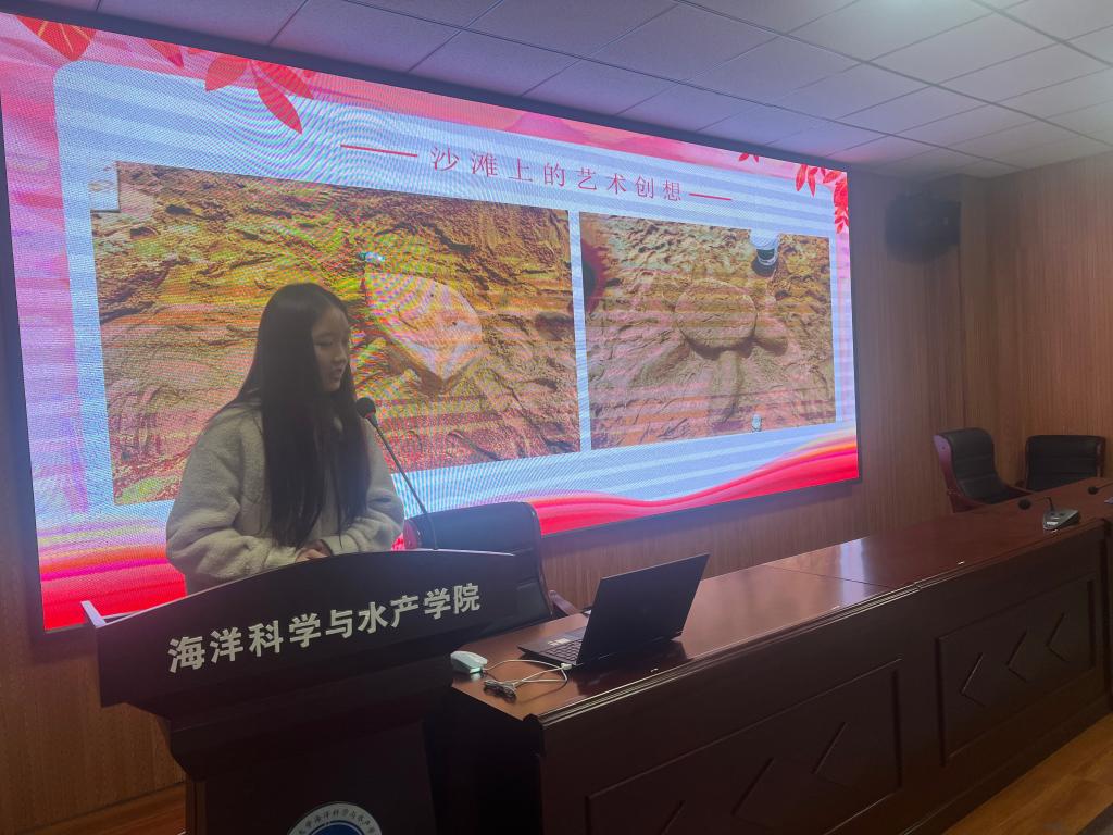 活动伊始,唐振新阐释了开展此次活动的目的及意义,随后邀请三位优秀的学生代表上台分享自己的青春故事。生技201班马佳伟展示了自己上大学以来参与的丰富多彩活动历程及获得的成绩与感悟,让在场观众感受到优秀大学生全面发展的综合素质;海科202班倪嘉璇介绍了垃圾污染对人类以及地球的危害,以自己独特的环保视角和方法将废弃光盘再利用,利用简单工具制作成各种造型的鸟类工艺雕塑;海科202班胡骏熙重点就自己社会实践及志愿服务的经历展开阐述,分享了自己一年来学习、生活、社会实践及志愿服务的所感所悟,让观众领略了奉献的成就感与幸福感。