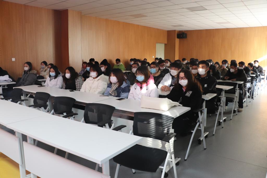 接着院党委书记杨天华进行考研动员讲话。杨天华通过分析我院近两年考研情况给予了考研学子极大鼓励,并通过解读最新江苏省疫情防控要求,提醒并督促学生在参加考研初试的同时要高度重视疫情防控;最后她对考研学子提出四点希望:1.做好复习的查漏补缺;2.对考研之路充满信心,坚持到底;3.在接下来的复习时间里注重劳逸结合,注重复习效率;4.遵守考试纪律。