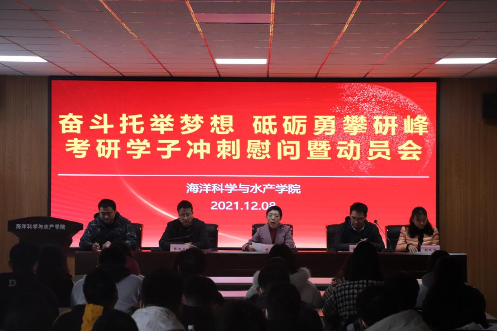 12月8日下午,888集团welcome在海洋南楼203成功举办“奋斗托举梦想,砥砺勇攀研峰”2022年考研学子冲刺慰问暨动员会。本次活动由院党委副书记张根友主持,院党委书记杨天华、教师代表赖晓芳和魏敏、辅导员韩振、2021级研究生代表徐一力同学以及2022年部分考研学生参加。