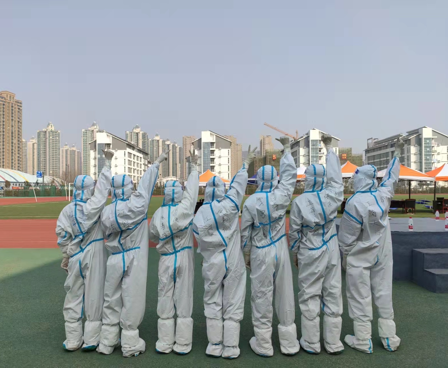 作为信息员的学生党员董欣雨表示“虽身着防护服,不能多喝水,不能吃东西,需要承受高温考验,但想到能为抗击疫情出一份力就倍感荣幸。尤其了解到医护人员的辛苦,更是对他们产生了敬佩之情,看见学校工作人员的辛苦付出,想到大家都在为战胜疫情这个目标而共同努力奋斗,心中更是产生了一股强大的力量。作为学生干部、学生党员,有危难更要勇敢向前冲,不能只享受虚名,而不承担责任义务,我要努力做好自己,积极为学校、社会奉献了自己的微薄力量。”