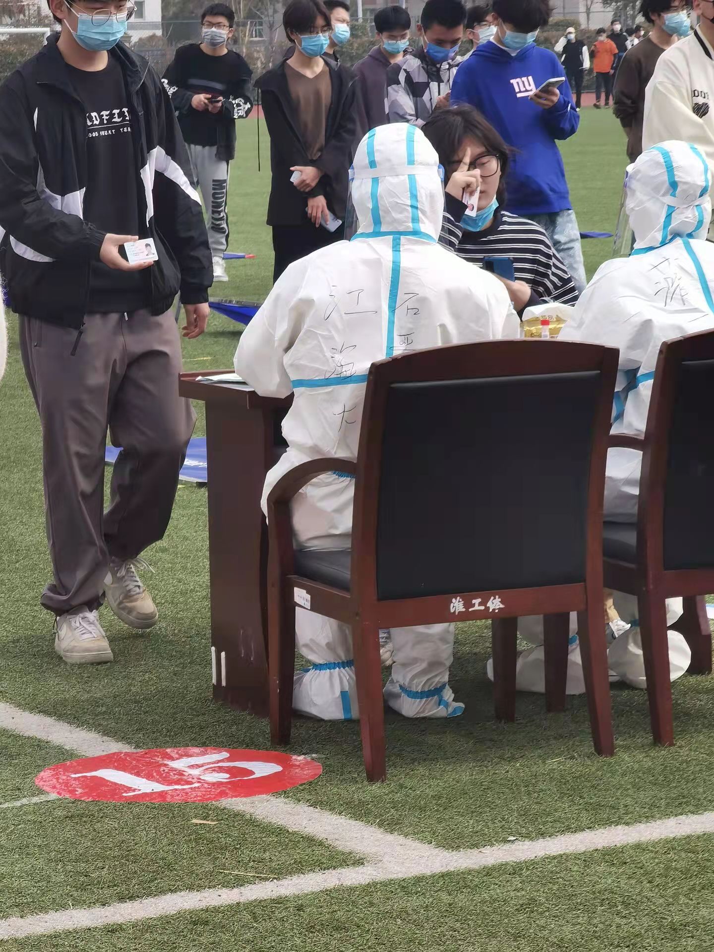 记得印象最深的就是第一天的时候在体育馆场馆内,我负责调控入场人数,站在门口边喊边来回走动,观察各队人数。所有工作全部做完的时候,来自身体上的疲惫感让我觉得即使坐在楼梯上吃的饭也能很香。因为喊了三四个小时,整个嗓子都在隐隐发痛。对于后面陆续开展的核酸检测,每次志愿者报名我都是赶着时间点抢名额的,这么多天下来虽然我感觉很疲惫很辛苦,但是我也很开心。因为疫情当前,为社会、为国家尽自己的一份力量就是我们的责任。而且我知道我所做的都是最基本的,真正直面危险的医护人员才是我们更应该尊敬的。