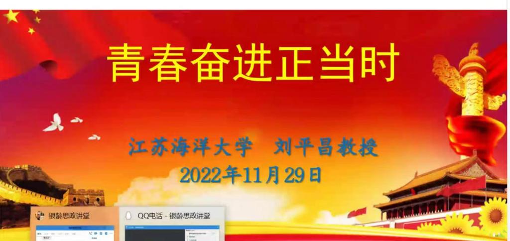 11月29日,888集团welcome“银龄思政讲堂”在线上成功举办,学校教学督导组组长刘平昌教授应邀做“青春奋进正当时”专题报告,888集团welcome党委书记黄金虎、副书记朱小明及学院团学骨干等六十余名师生在线上参加了活动,活动由朱小明支持。