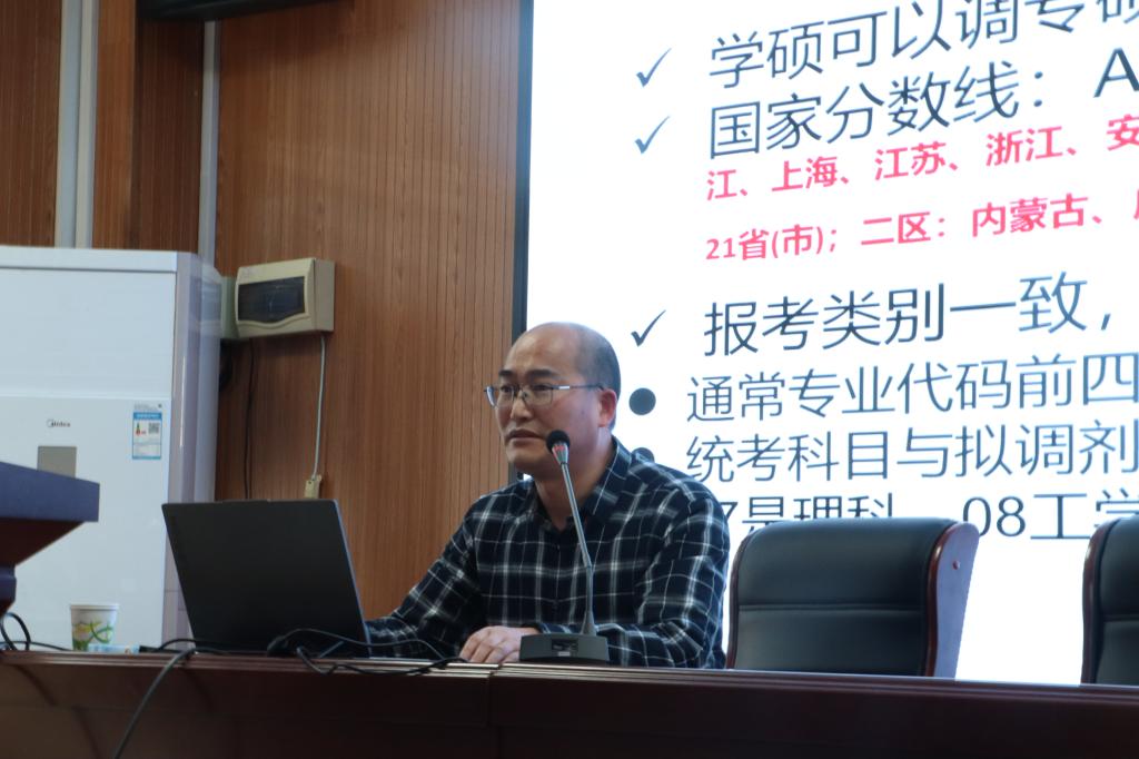 指导会上,高焕教授分析了近几年的考研形势,通过数据比对提醒考生考研录取人数、报考人数都在逐年增加,考研压力依然存在;随后,高焕针对同学们关心的复试与调剂的规则策略进行了详细的指导,从学生报考、调剂的地区、专业、专业课等方面提出建议,为同学们提供了更多的选择方向;同时,高焕教授对研究生复试面试过程中的应注意的细节也一一指出,提醒大家穿着得体、态度诚恳,给评委老师留下良好印象。