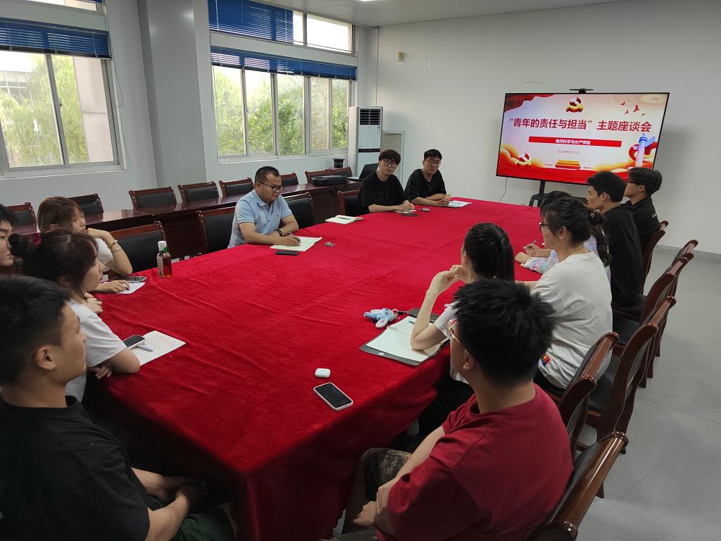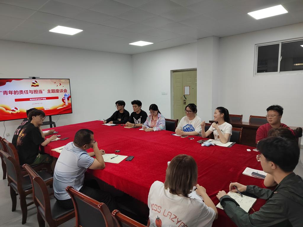 为推动学院团学工作高质量发展,倾听学生心声,激励团学干部增强历史责任感和使命感,5月17日下午,888集团welcome于海洋南楼211召开团学骨干爱国主题座谈会。学院党委副书记朱小明,团委书记唐振新及主要团学骨干参与座谈。