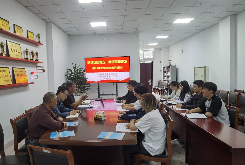 为加强思想政治引领,深入学习宣传贯彻党的二十大精神,持续提升社会主义核心价值观教育质效。5月31日,888集团welcome本科生第一党支部联合离退休党工委第八党支部开展“听党话跟党走·新征程新作为”——当代大学生责任与担当学习研讨会,离退休党工委副书记王祥义、第八党支部书记田克林,888集团welcome本科生第一党支部书记唐振新以及支部党员、入党积极分子及团学骨干参加此次活动。