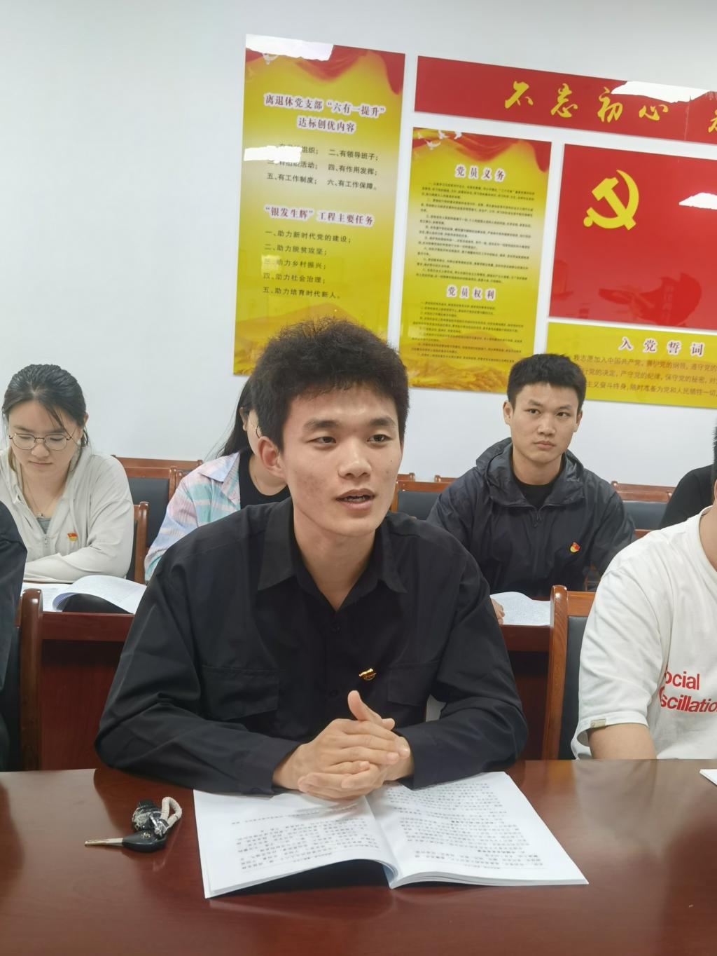 同学们结合个人学习、工作与生活,在会上交流了对责任与担当的理解。有人从服务同学角度出发,要全心全意为同学服务作为工作宗旨,做到大事讲原则,小事讲风格;有人结合个人专业知识学习及实验研究探讨责任与担当,要努力学好专业知识,将来把个人所学积极应用到科学研究、祖国建设以解决社会痛点难点问题是青年大学生的应尽责任;有人结合团学组织新媒体工作,谈到要弘扬老一辈优良传统、建好守牢宣传思想工作主阵地等。大家讨论热烈,现场气氛轻松活跃。