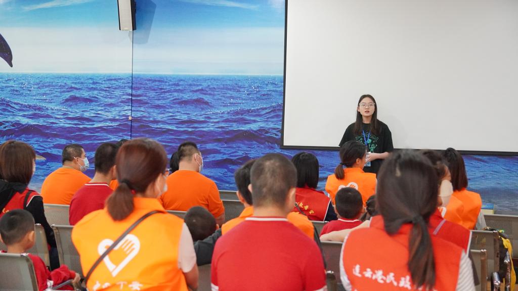9月12日上午,连云港市社会福利中心孤残儿童在工作人员的带领下乘坐大巴车抵达我校海洋馆,在海洋科普讲解志愿者带领下,集中进入海洋馆参观。本次活动旨在让孩子们感受大海的奇妙与美丽,拓展孩子们的视野,加强他们对自然环境保护的认知。