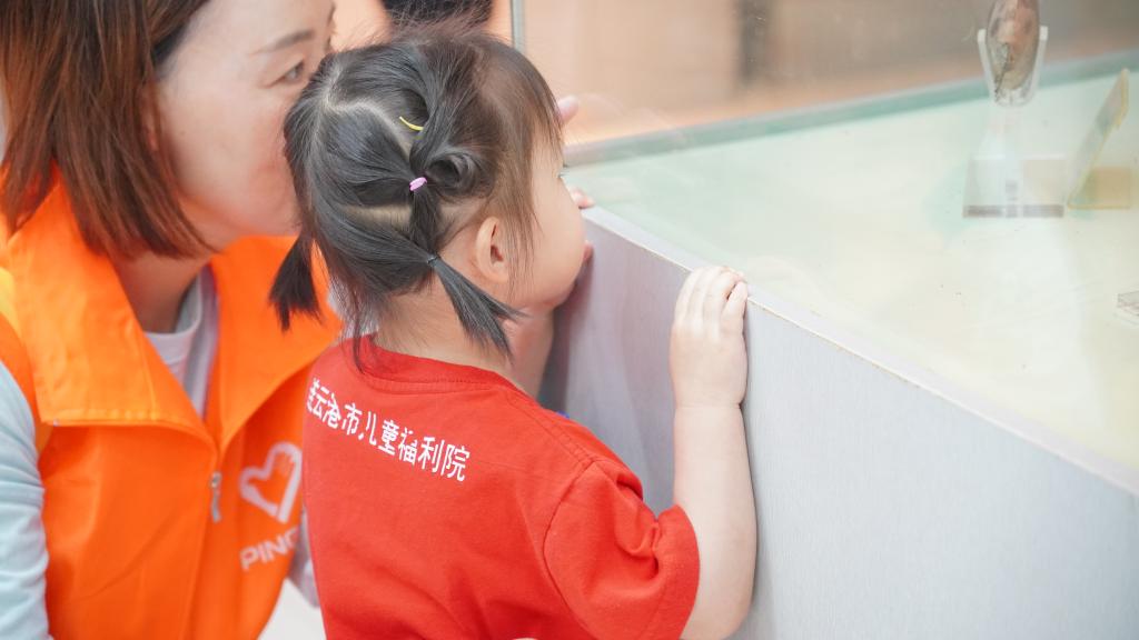 活动中,志愿者们热情地帮助每一位孤残儿童,做到一对一分工对接。在海洋馆里,工作人员细心地为孩子们讲解每一个展品,让孩子们通过观察各种珍稀的海洋生物来了解它们的生态习性和生存环境。孩子们看到了大海里的各种动物:海马、小丑鱼、海星、海螺、海龟,还有我国特有的金枪鱼品种,他们纷纷表示大开眼界并感叹海洋生物的奇妙。孩子们对于海洋生态环境的认识更加深入,对于海洋生态保护的重要性有了更深的理解。
