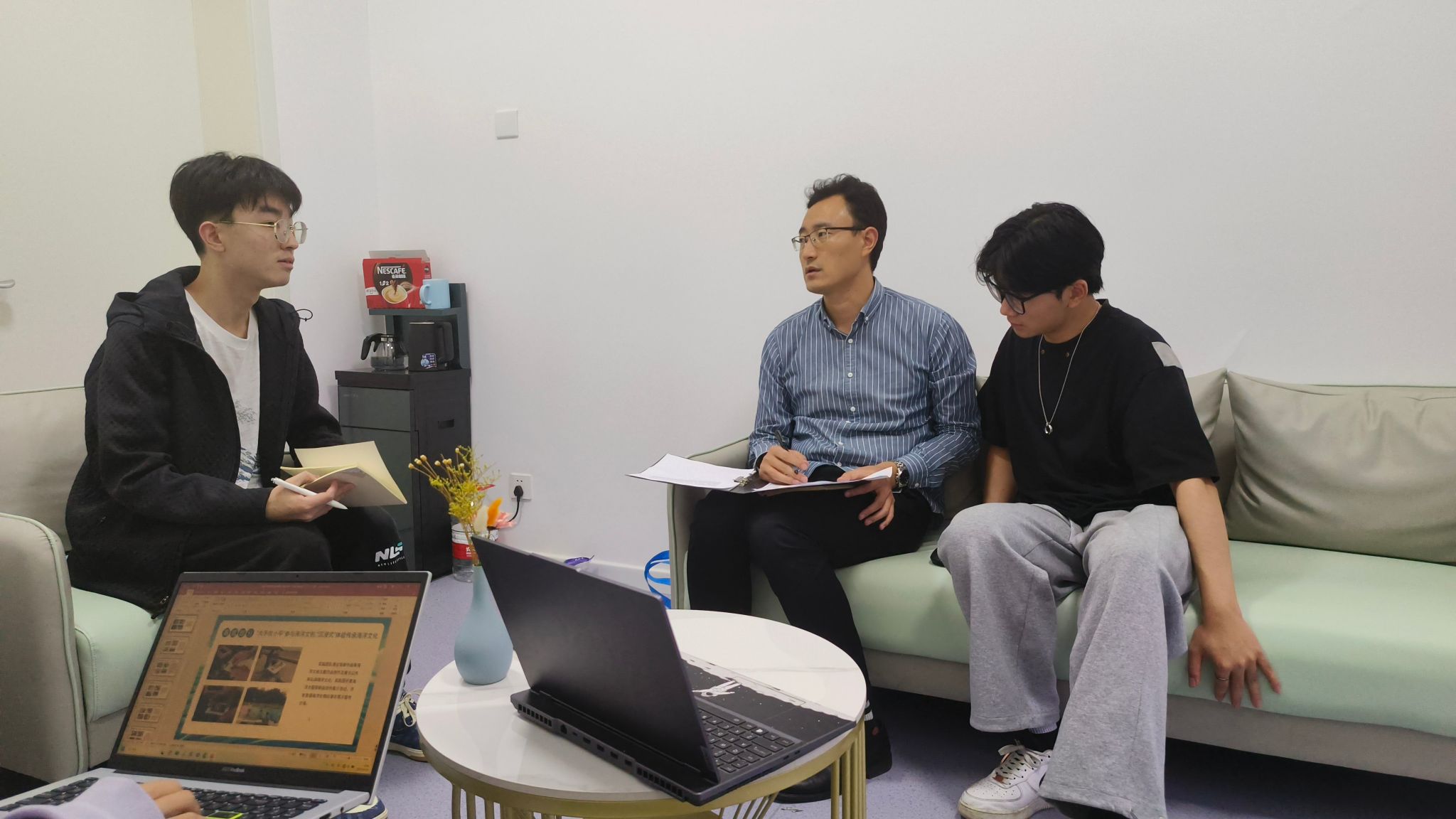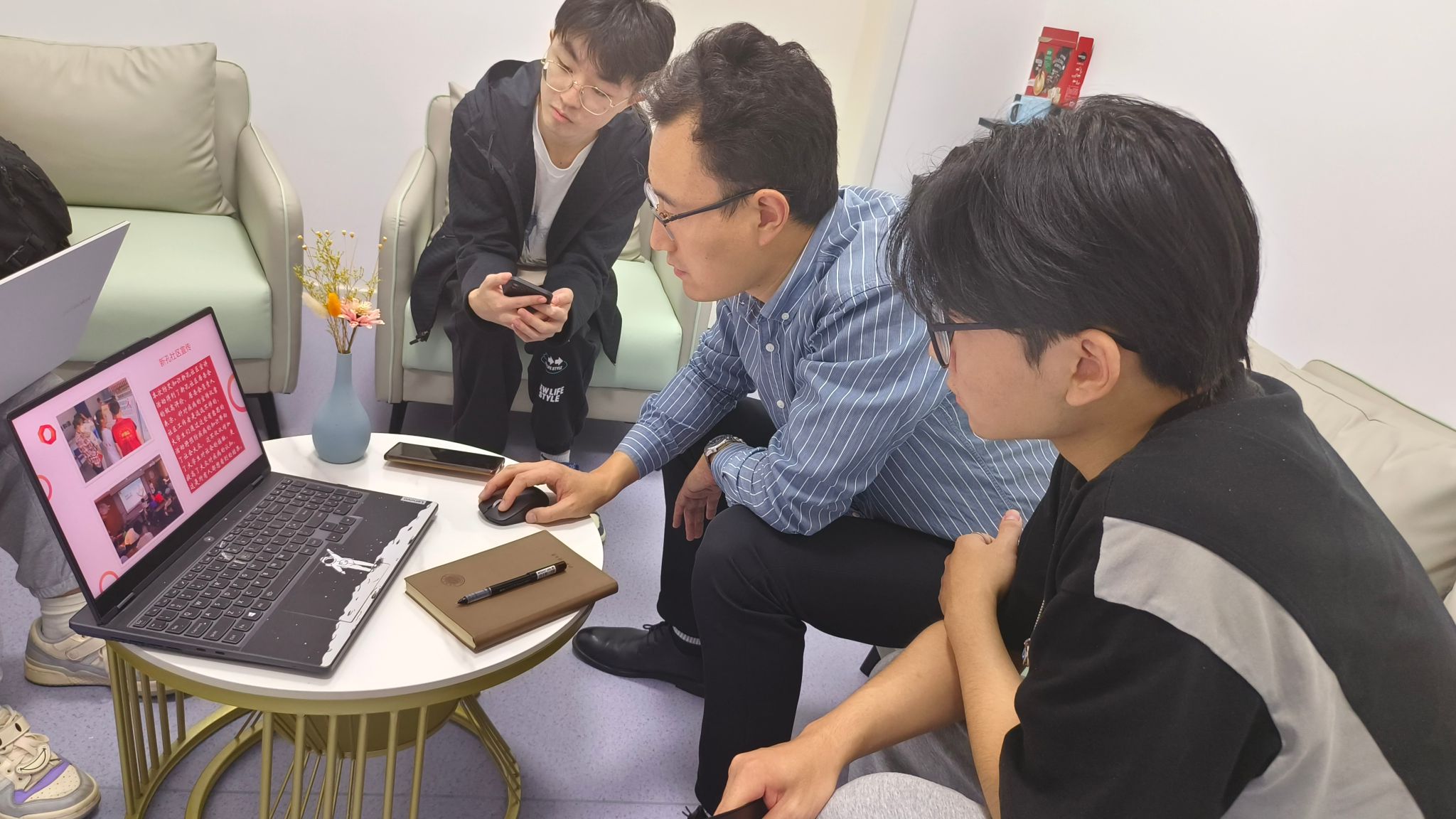 会议上,两位项目汇报人先后进行了汇报展示。首先是“青春奋进,博爱与你”实践项目汇报人吴子恒进行汇报展示。在吴子恒的讲述呈现后,唐振新先是肯定了项目中一些优点,随后将展示过程中暴露出的不足一一指出,并与展示人讨论打磨出更好的解决方案,尽力让最终汇报能有更佳的呈现效果,不辜负项目成员前期的辛苦付出。