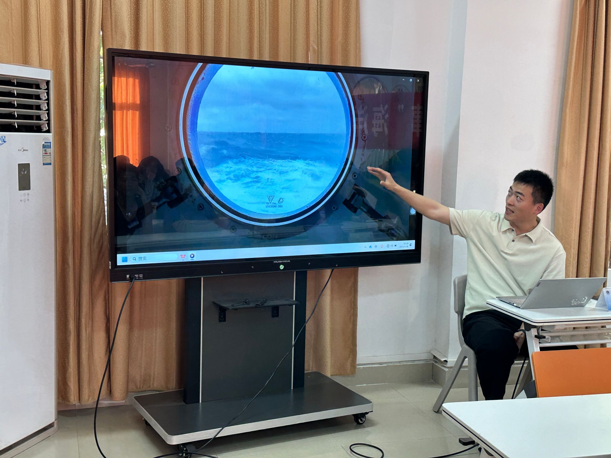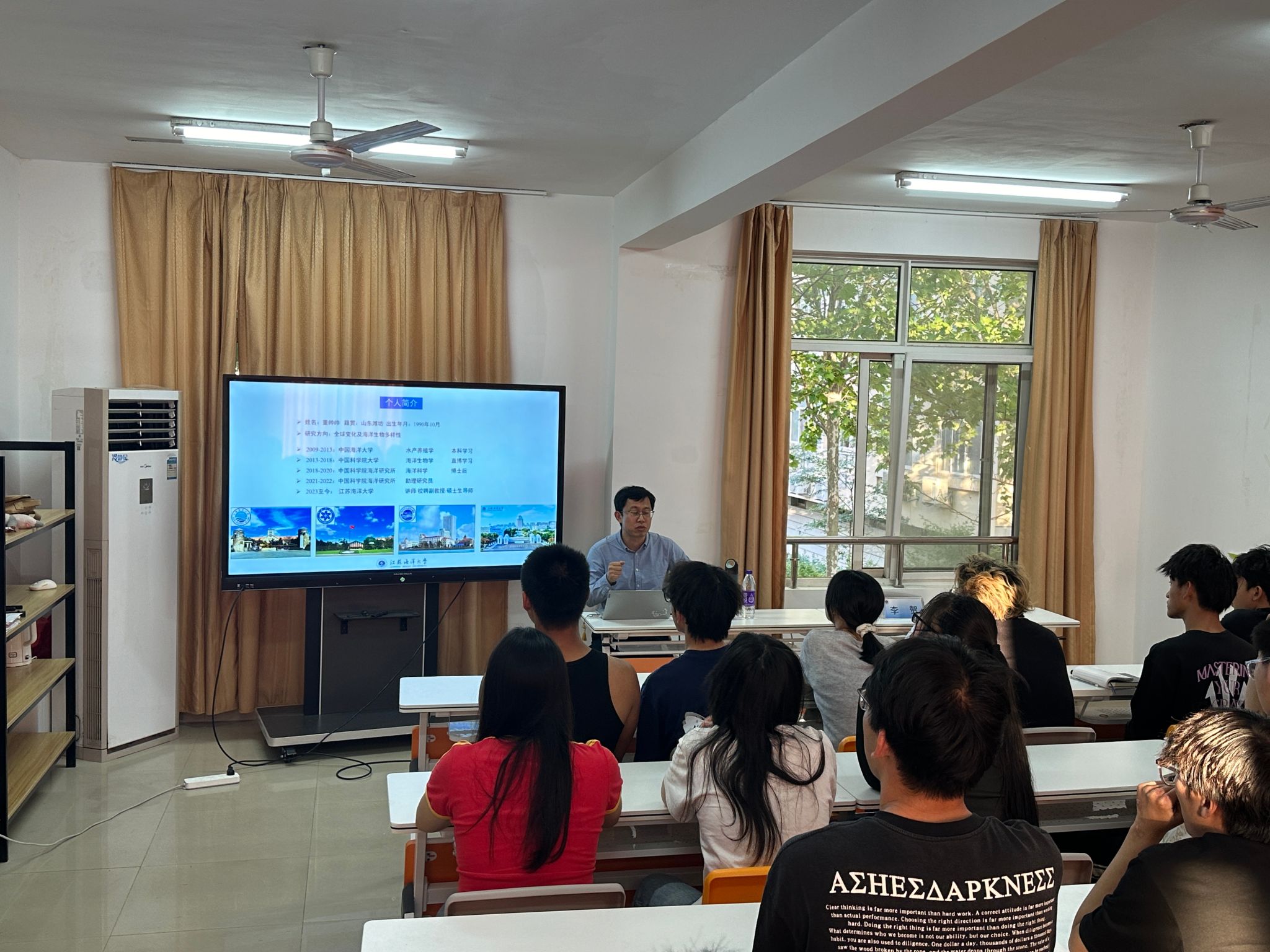 随后,董帅帅老师从书中的海洋、实验室里的海洋等方面讲述了他与海洋的故事,向同学们介绍了他从一位懵懂的大一新生到成为一位坚定的海洋人的心路历程。从本科时期对海洋的好奇和热爱,到硕士、博士期间的深入研究,再到博士后的实验和科考经历,他的每一步都充满了对海洋的热爱和对科学的执着。他结合自身经历勉励同学们多尝试、多读书、会识人,并鼓励同学们自信、自洽、悟我,勇敢坚定地把握住每一次机会。当有同学问到本科阶段应侧重于什么,他表示应在确保成绩的前提下,多尝试,参加各种活动和讲座,拓宽视野,认识各类优秀的人。
