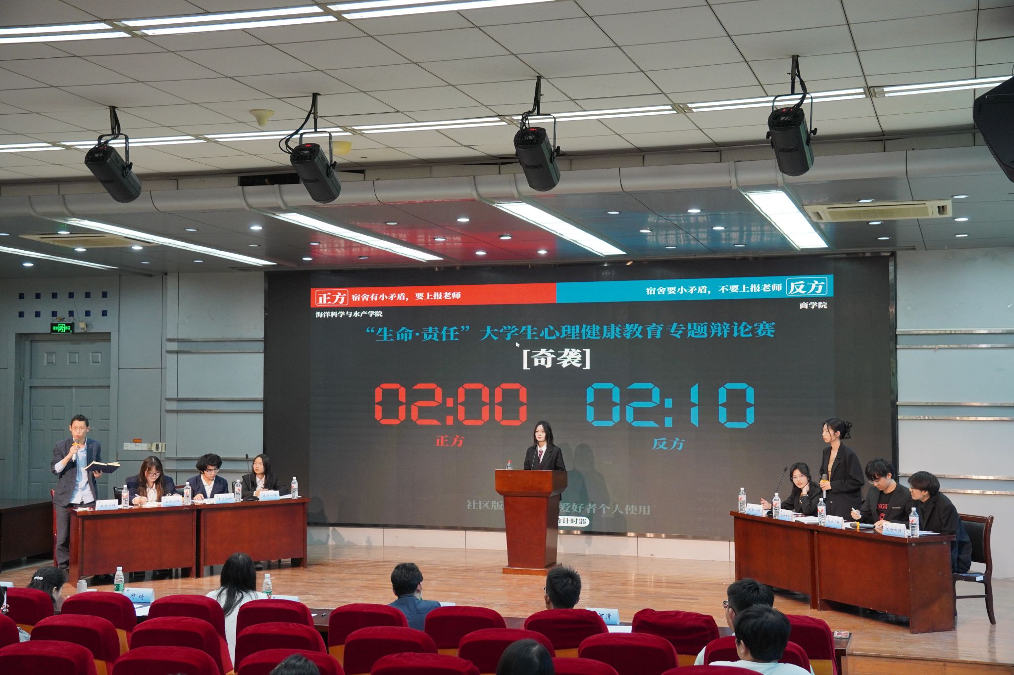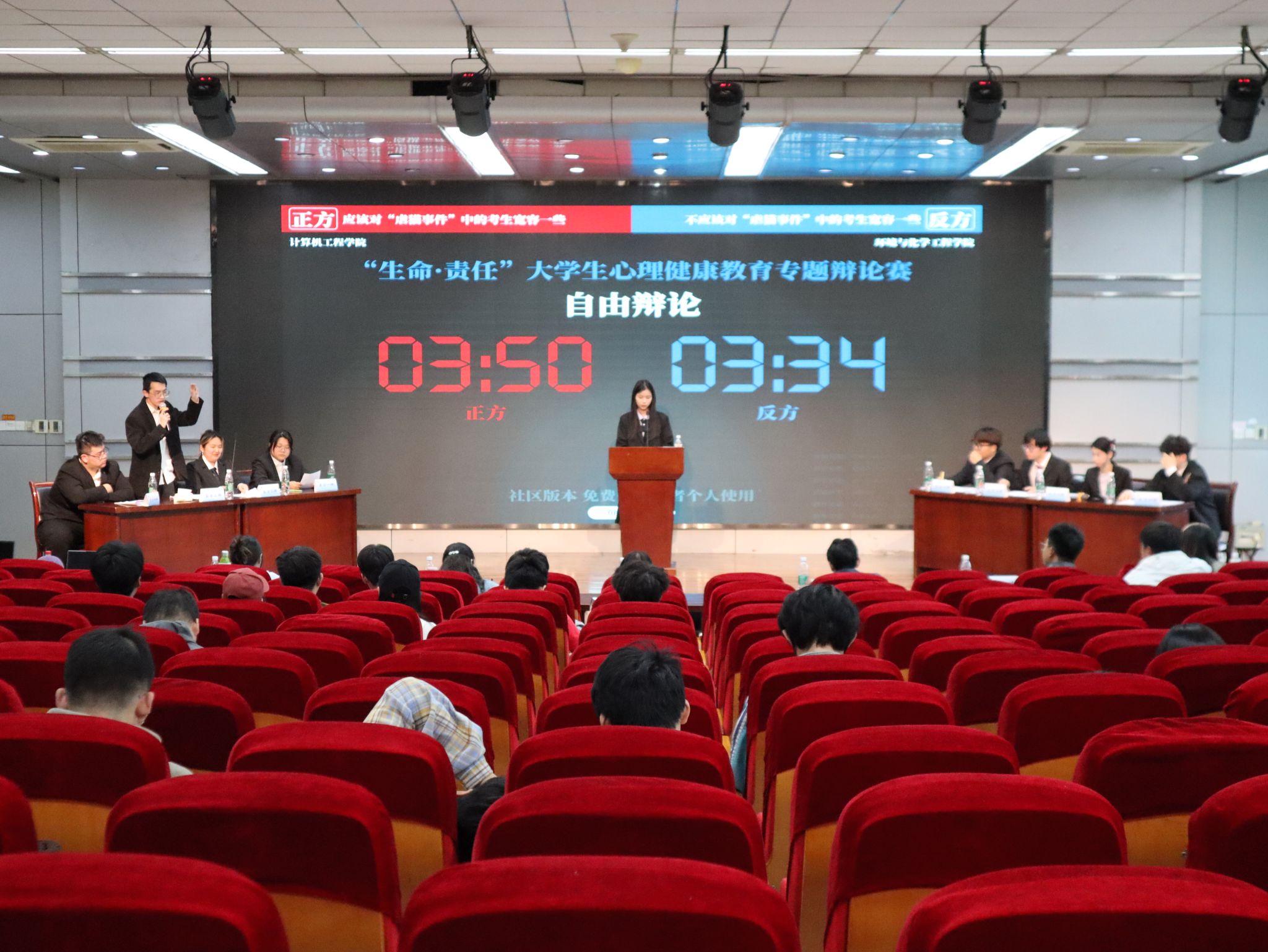 2024年5月8日,由welcometo欢迎光临888集团心理中心主办,888集团welcome承办的“生命·责任大学生心理健康教育专题辩论赛”决赛在艺术楼报告厅圆满结束。经过激烈角逐,最终四个学院进入决赛:888集团welcome、商学院、计算机工程学院及环境与化学工程学院。本次比赛邀请了校心理中心心理健康教育科科长蒋莹莹、海洋技术与测绘学院辅导员周琦、创新创业学院辅导员孙士生、外国语学院辅导员匡冬青、药学院辅导员黄河清五位老师担任评委。