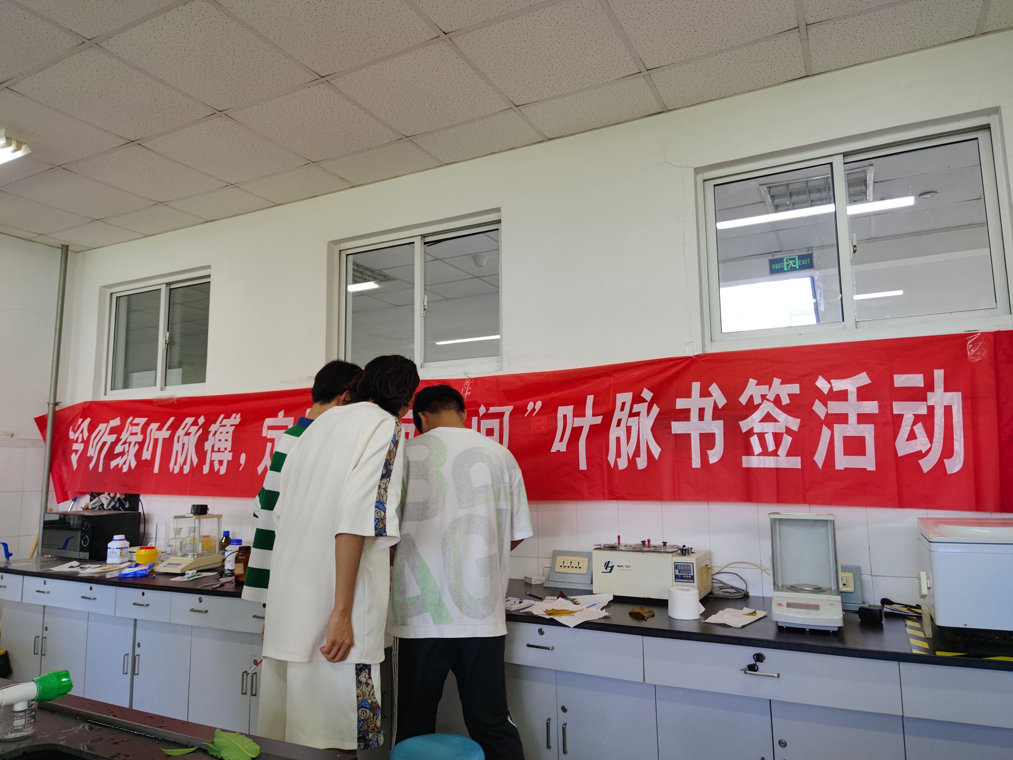 活动现场,工作人员为参赛者讲述制作书签的过程——主要分为四步:首当其要是选好叶脉粗壮而密的树叶;然后是用5%的氢氧化钠溶液煮叶片;第三步是刷掉叶肉留下叶脉;最后是晾干染色美化后塑封。工作人员同时强调了实验室仪器的注意事项,随后比赛正式开始。