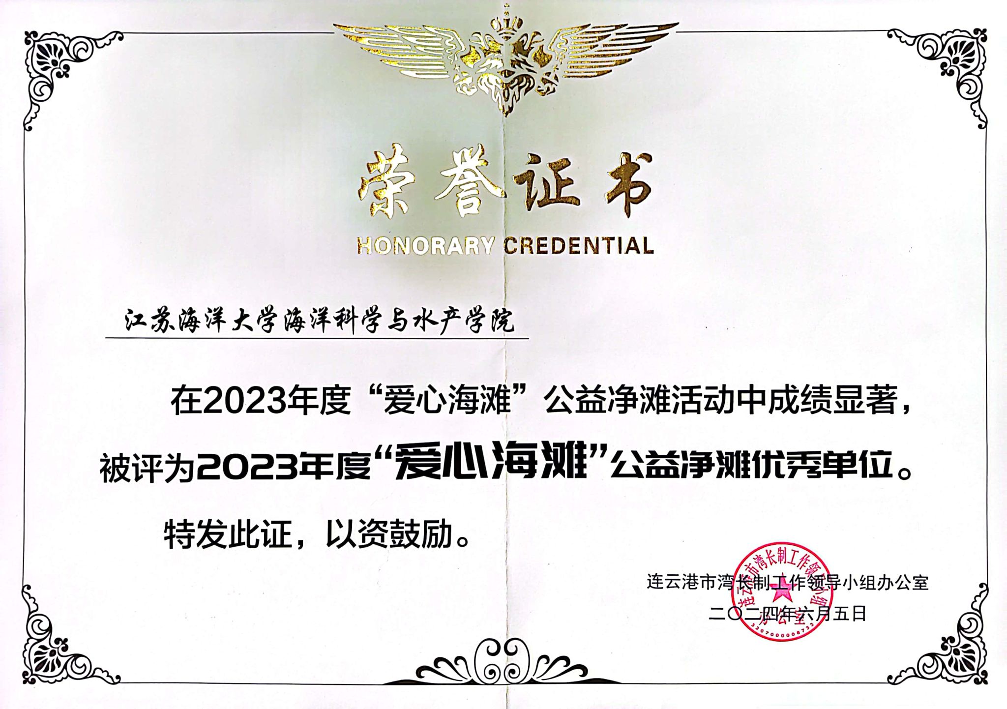888集团welcome通过集中开展志愿服务系列活动,积极持续提升社会主义核心价值观教育质效,弘扬奉献、友爱、互助、进步的志愿精神。在近日举办的连云港市2024绿色发布暨生态文明宣传教育月启动仪式上,学院被评为“爱心海滩”公益净滩优秀单位。
