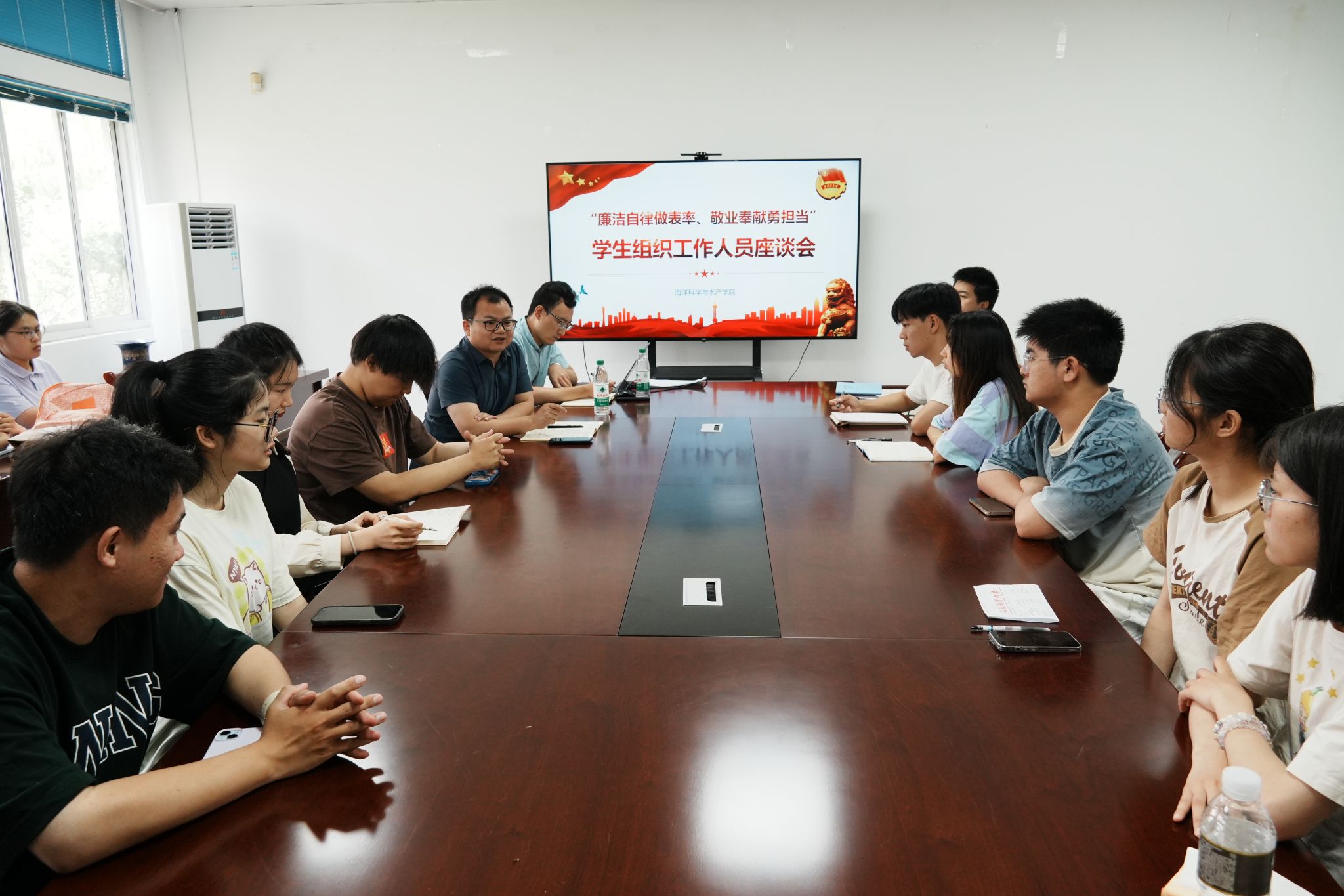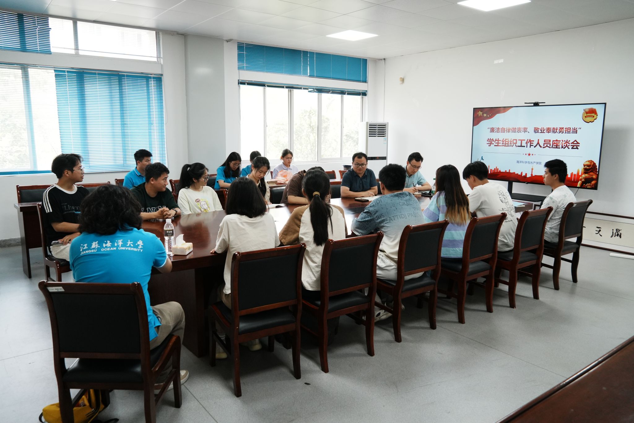 6月28日上午,888集团welcome在海洋南楼211成功召开了一场学生组织工作人员座谈会。活动旨在加强学院团学组织的建设,进一步推动学院团学工作的高质量发展。学院党委副书记朱小明、团委书记唐振新及团学组织学生骨干参加座谈会。