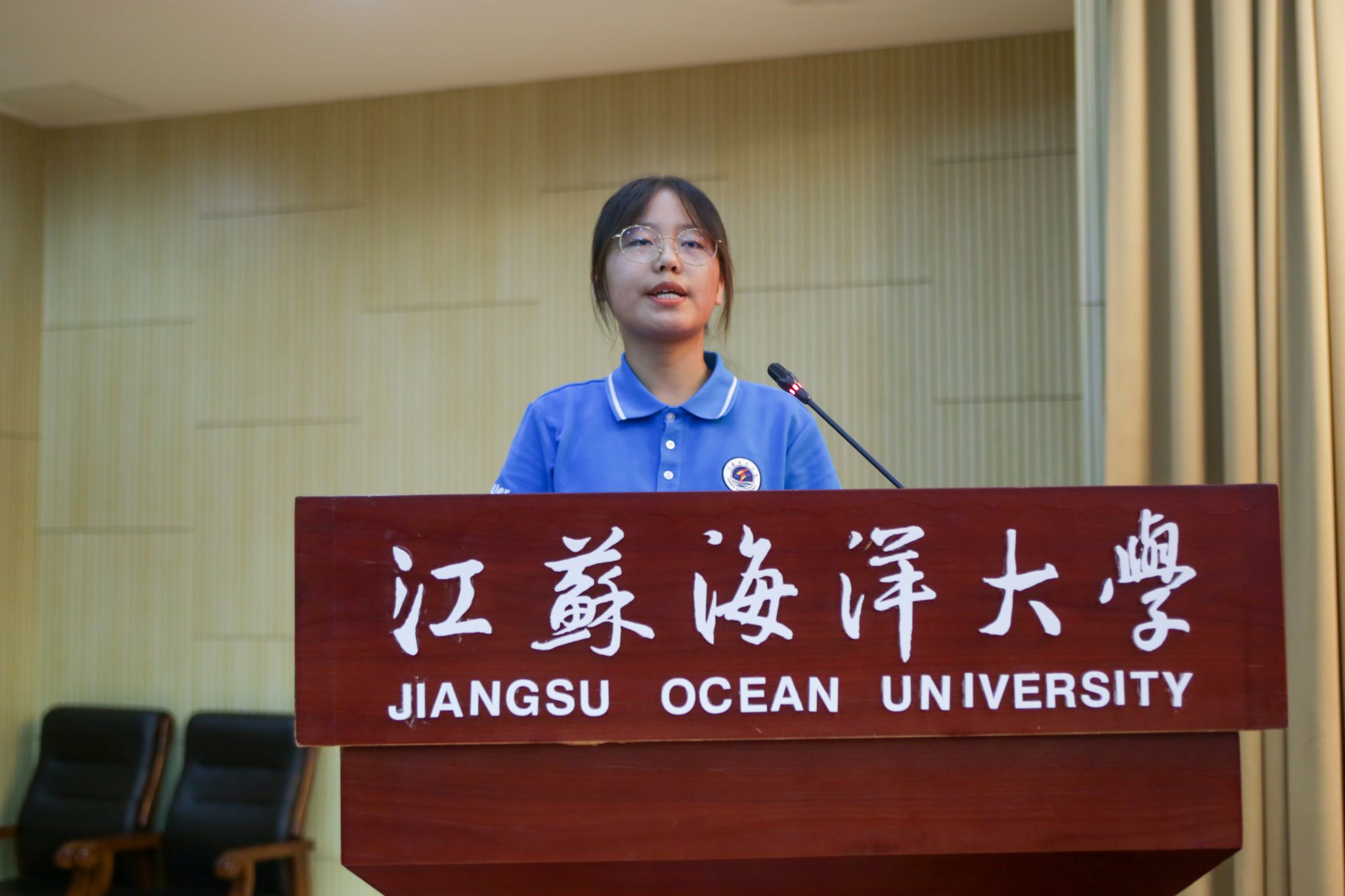 新生代表许文丽发言,她表达了对美好未来的无限憧憬,号召全体新生要充分珍惜大学美好时光,在大学这个广阔平台上扎根、沉淀、积累,争做关心海洋、认识海洋、经略海洋的新时代学子,开启人生新篇章!