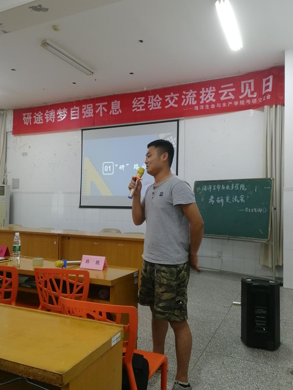 活动伊始,胡经飞首先分享了研究生的科研学习经历,为大家生动展现了读研期间的学习生活,同时她也分享了自己的考研经历。四位考研达人分别以自己的考研经历为基础向同学们分享了考研备考过程中的注意点,分享了很多实用经验和体会心得。其中滕润鑫的经验分享尤为细致,他从备考期间的宿舍人际关系改善,考前各考试科目兴奋点调整,错题集高效整理与利用等等方面为大家做了详尽耐心的分享。