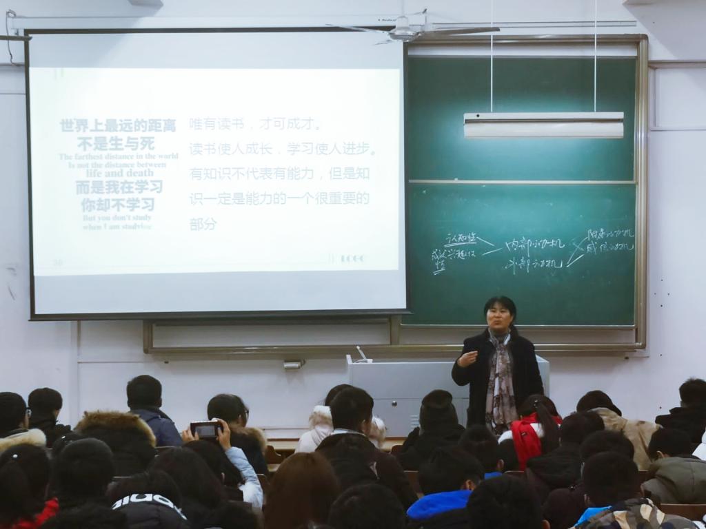 讲座伊始,张萍由几个实际的案例引入,给同学们解释了什么是学习动机,动机的分类以及动机的来源和影响,通俗易懂的解释,让同学们知道了反感学习和逆反心理的来源,了解了自己的真实内心。讲座过程中,老师和同学进行了互动,互动环节提出了学习以及职业生涯规划的概念,老师结合自己的亲身经历告诉同学们:学习的目的不仅是掌握新知识和新技能,能够让你在将来的工作中有具备更好地学习能力,更重要的是学习可以让自己掌握人生的方向盘,决定自己的未来。讲座最后,张萍给同学们总结了掌握未来、有助成功的几个要素:一是要有明确的目标和志向;二是要能够坚定专注,不断努力;三是要保持健康的身体;四是厚德载物,德行天下。