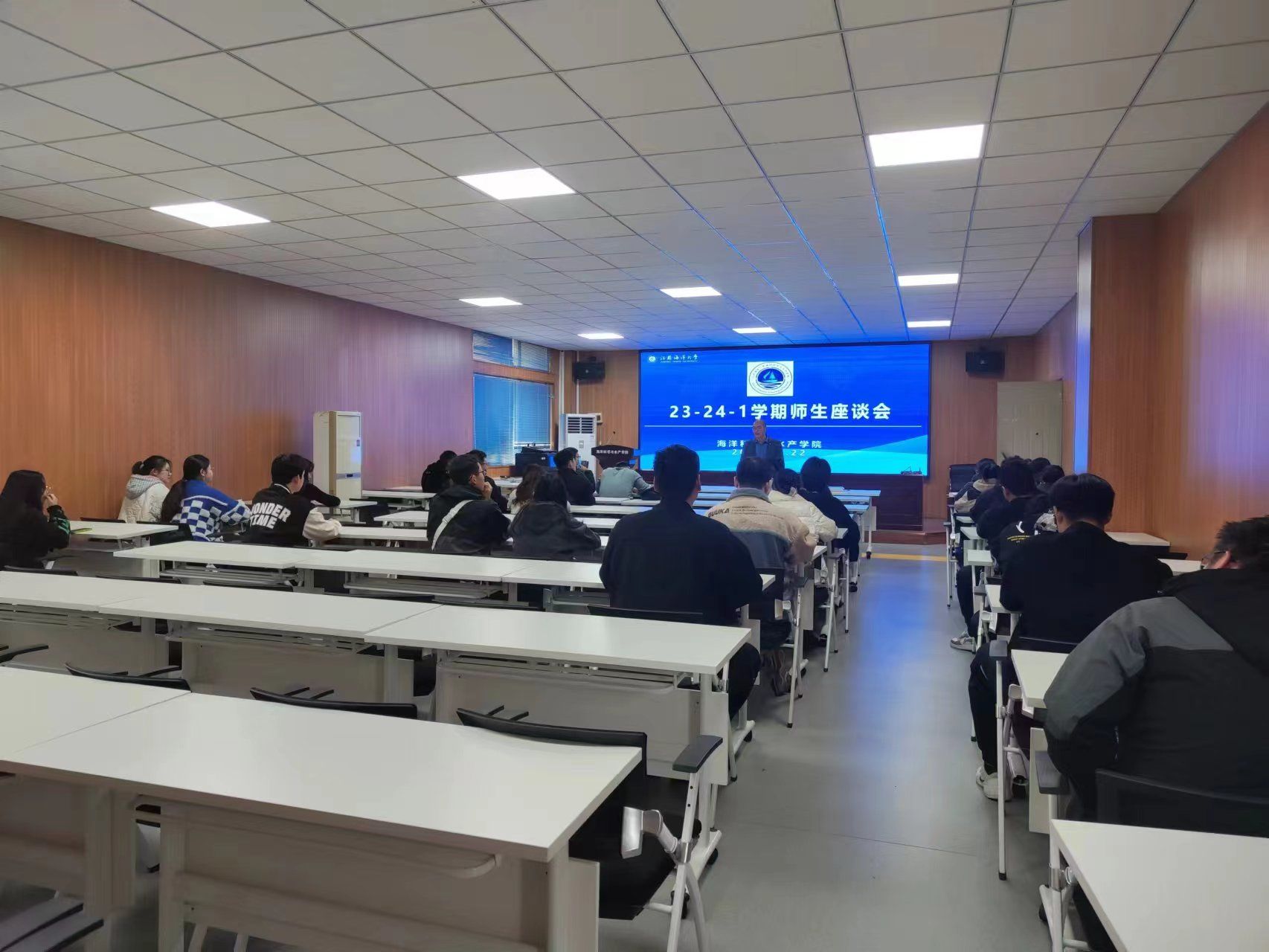 11月22日下午,我院在海洋南楼201会议室召开了2023-2024-1学期期中本科教学师生座谈会,来自各年级28位学生代表和4个专业的教师代表参会,座谈会由副院长高焕主持。