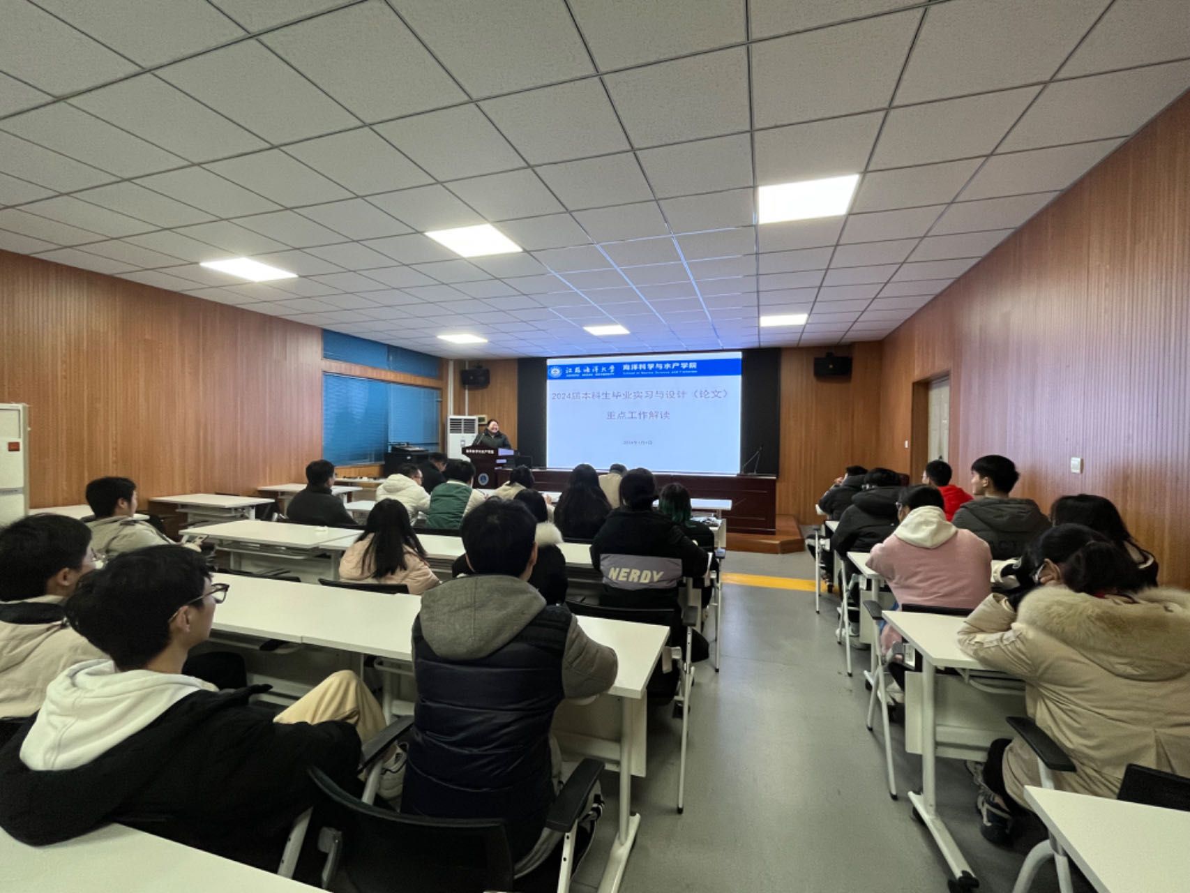 姬南京对2024届毕业生实习与毕业论文工作方案进行了解读,并作动员讲话。姬南京指出毕业实习与毕业论文是人才培养方案中的一个重要的组成部分,是培养学生综合运用所学知识解决实际问题的一个重要环节。要求毕业生们要重视毕业论文工作,在毕业实习与论文开展过程中要注意合理规划时间、保障实习和实验室工作安全,积极主动地与指导老师沟通联系,认真踏实做好从论文选题到答辩的每个环节,确保高质量完成毕业论文。